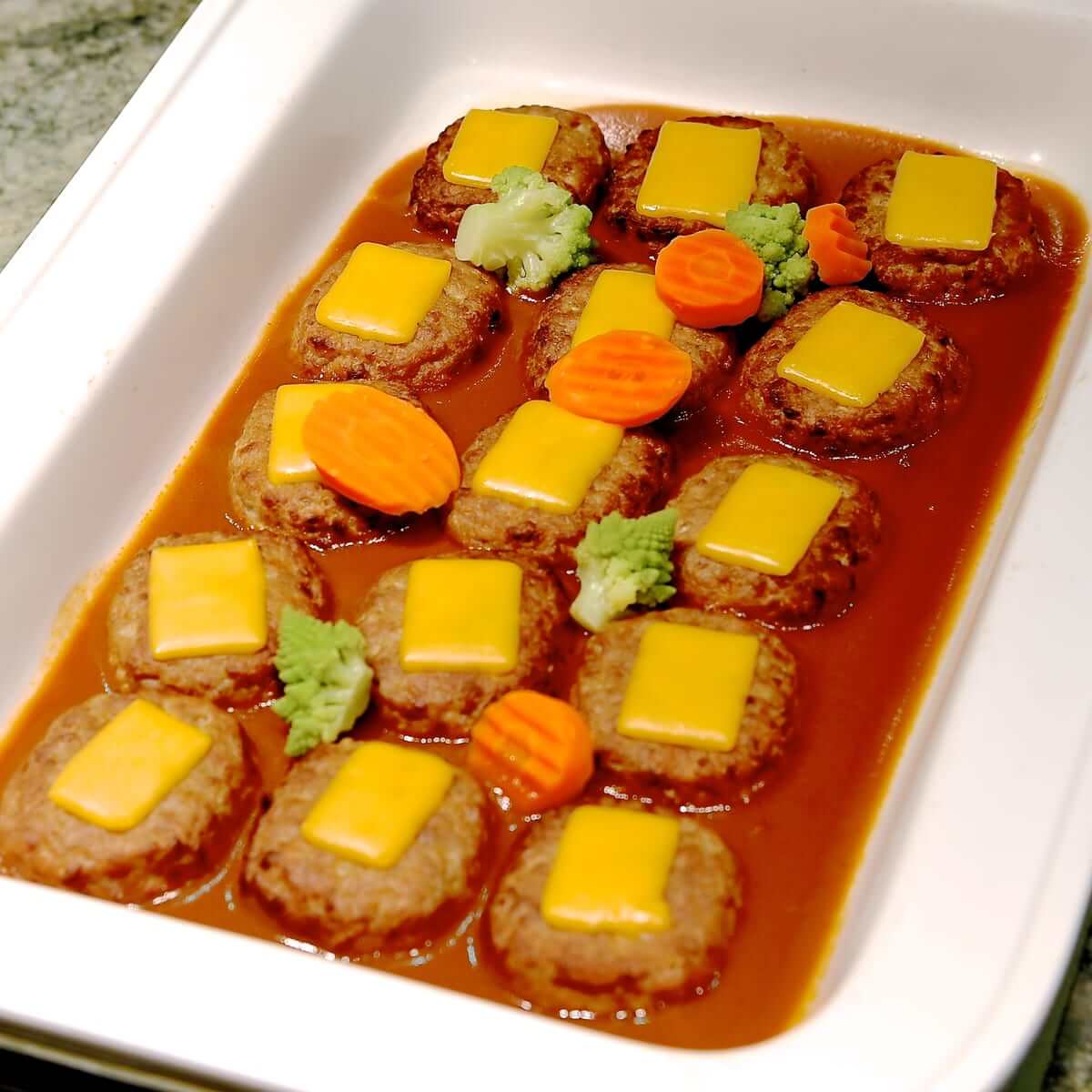 カラフルかわいいチーズハンバーグ。
