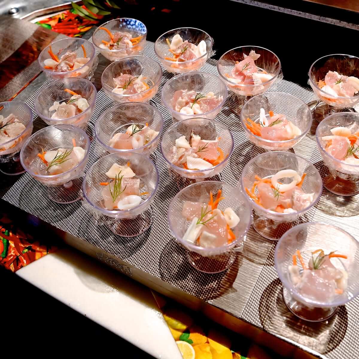 キャストさんが取り分けてくれる冷製料理は、