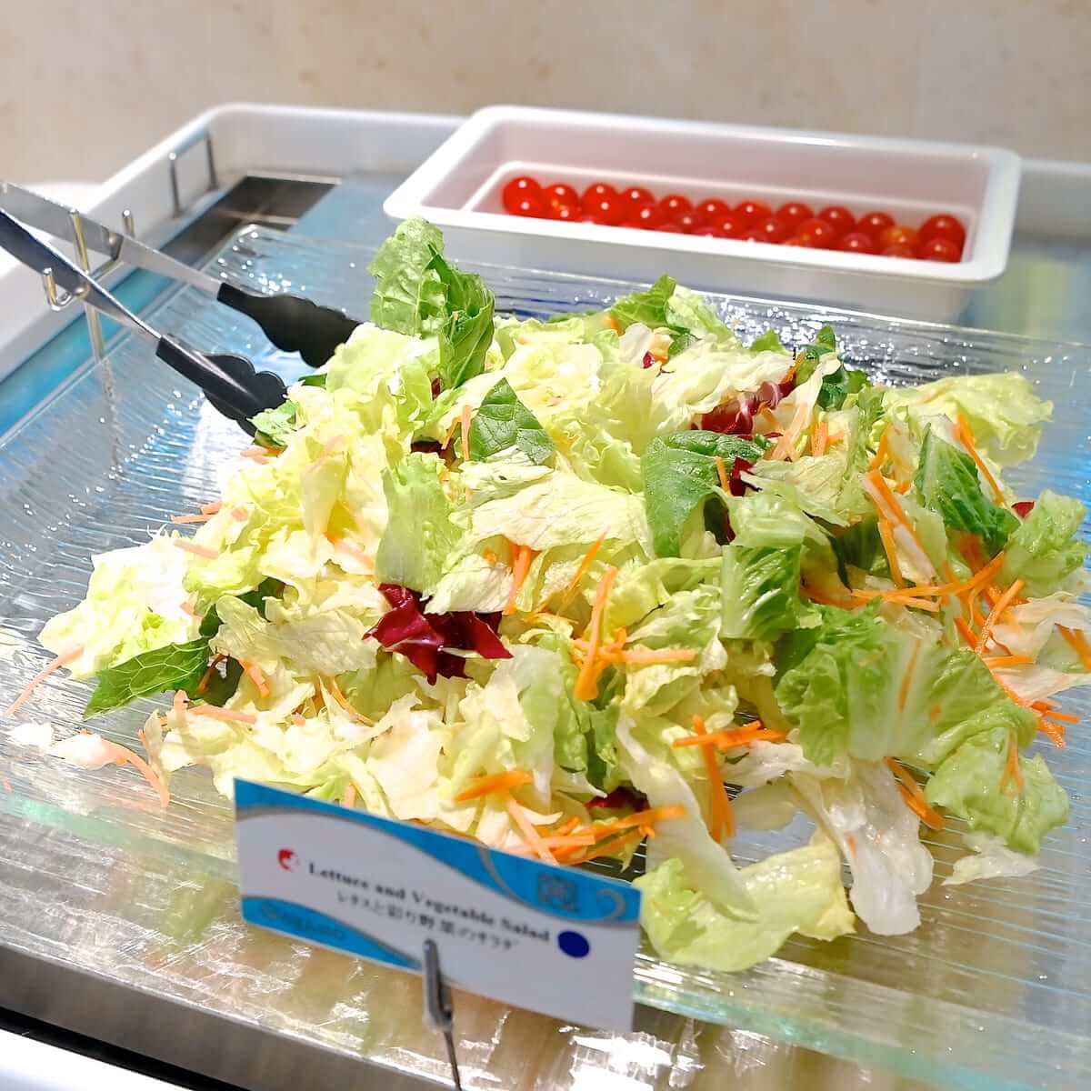 フレッシュなレタスと彩り野菜のサラダ、ミニトマト。