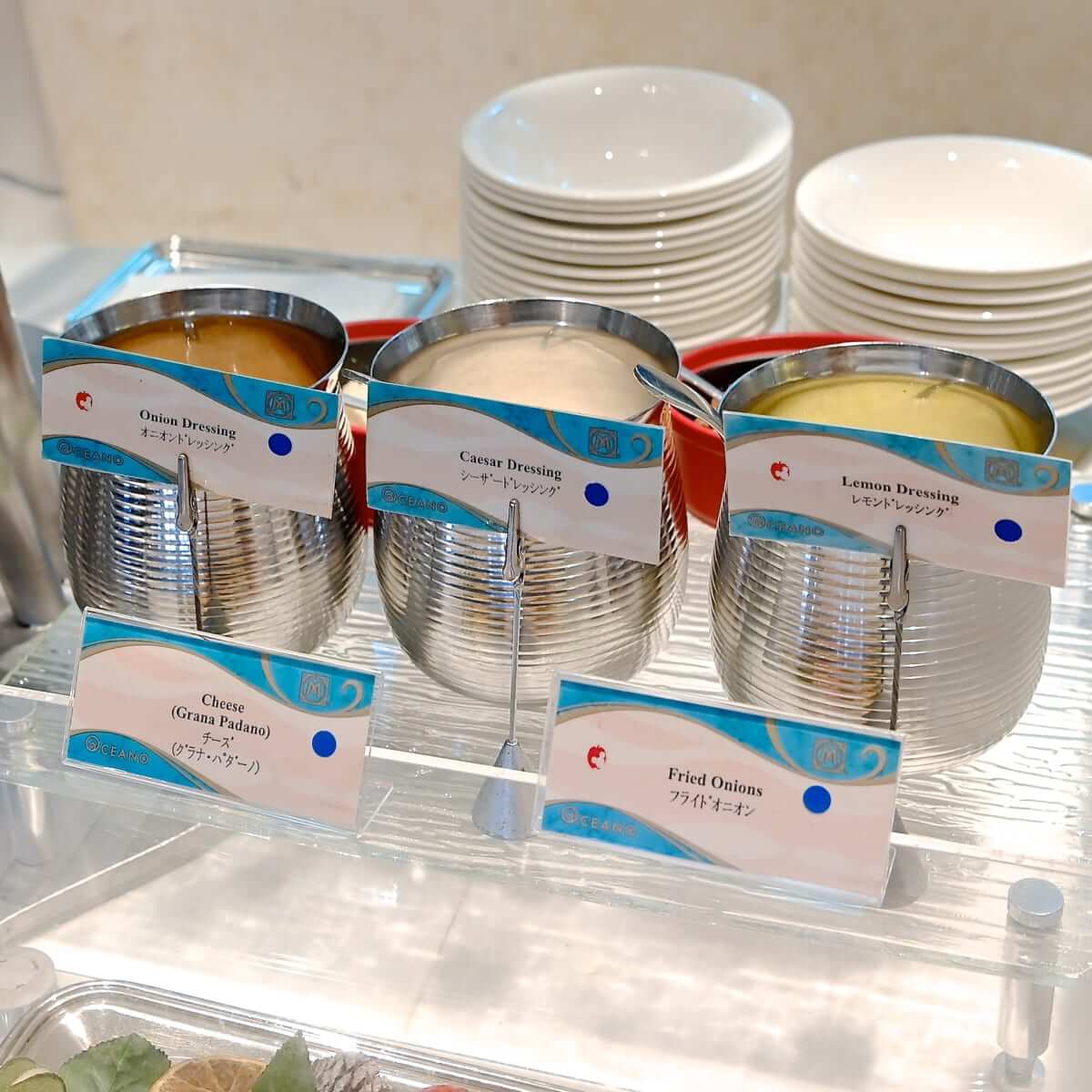 ドレッシングは、レモンドレッシング、シーザードレッシング、オニオンドレッシングから選択できます。