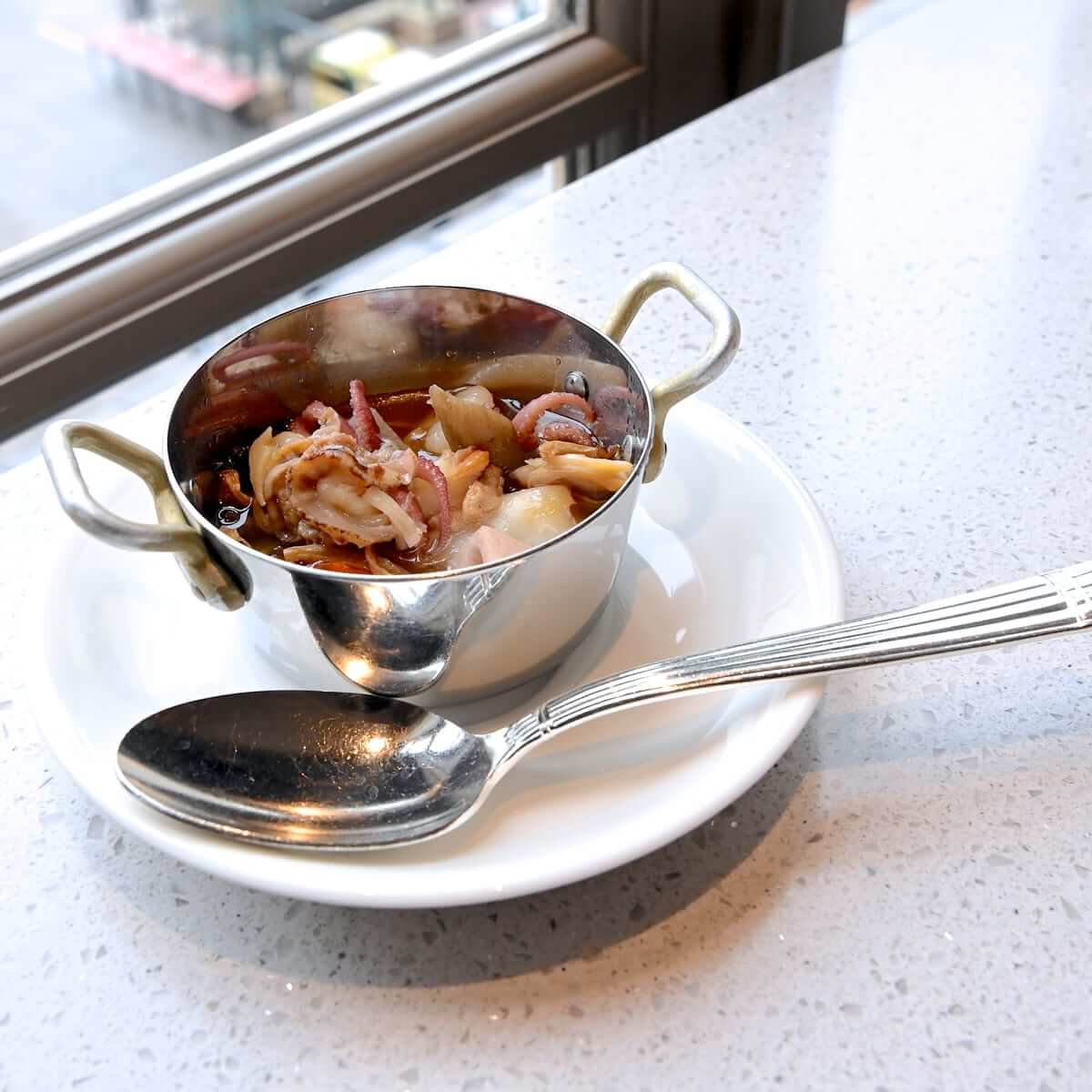 にんにく、オリーブオイル、魚介類、野菜を煮込んだスペイン料理、アヒージョ。