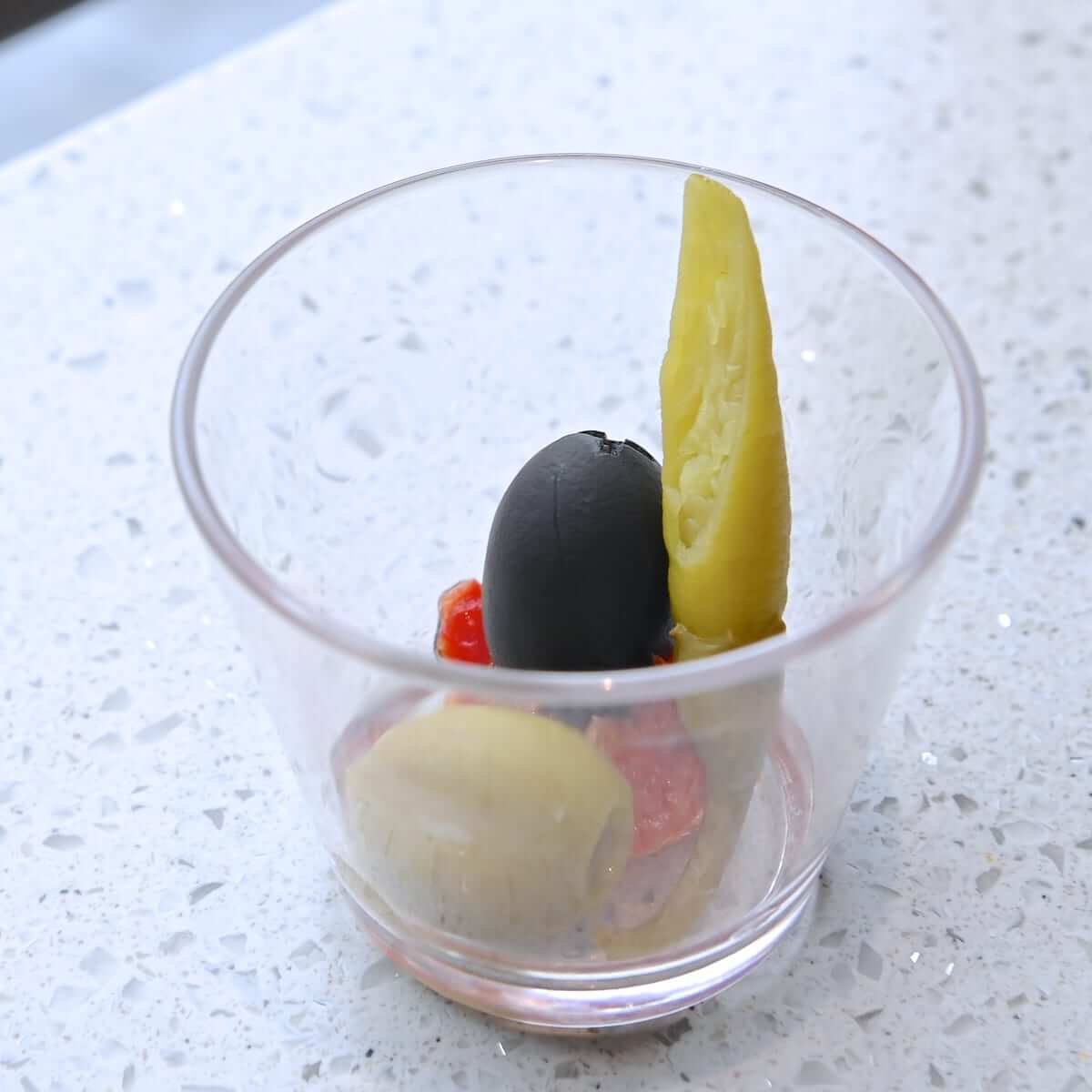 程よい辛味と酸味の青唐辛子ピクルスとオリーヴ。