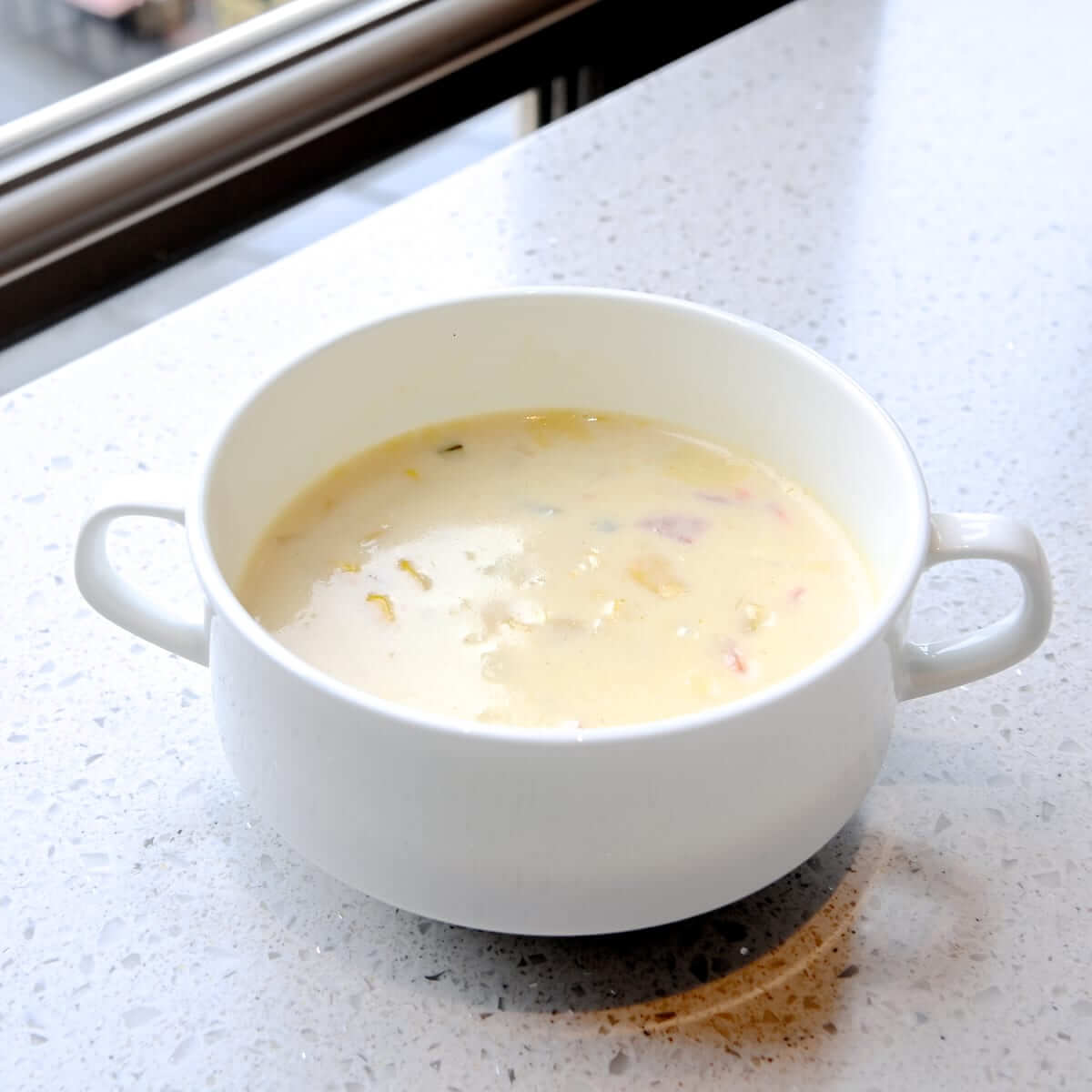 具だくさん、クリーミーなコーンチャウダー。