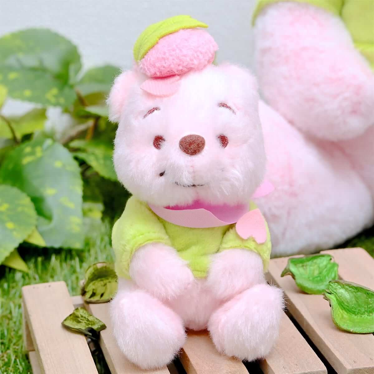 ライトピンク、ライトグリーンのふんわりかわいいサクラカラーにつつまれた『くまのプーさん』のぬいぐるみ☆