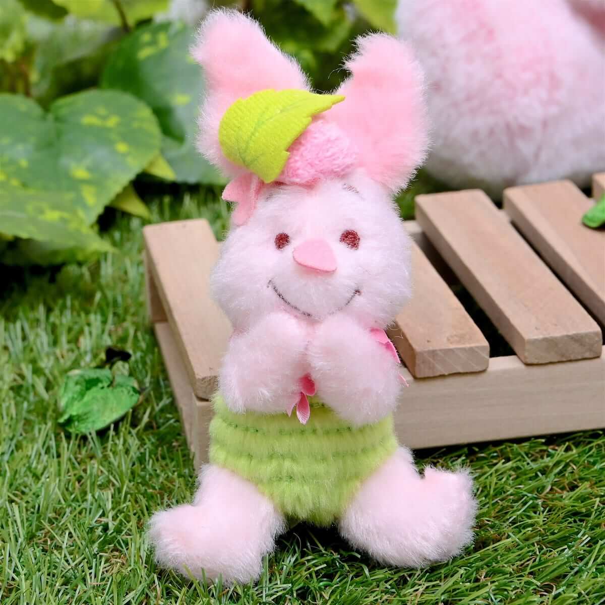 丸い桜餅のベレー帽をつけた、ふわふわかわいいピグレットのぬいぐるみキーチェーン。