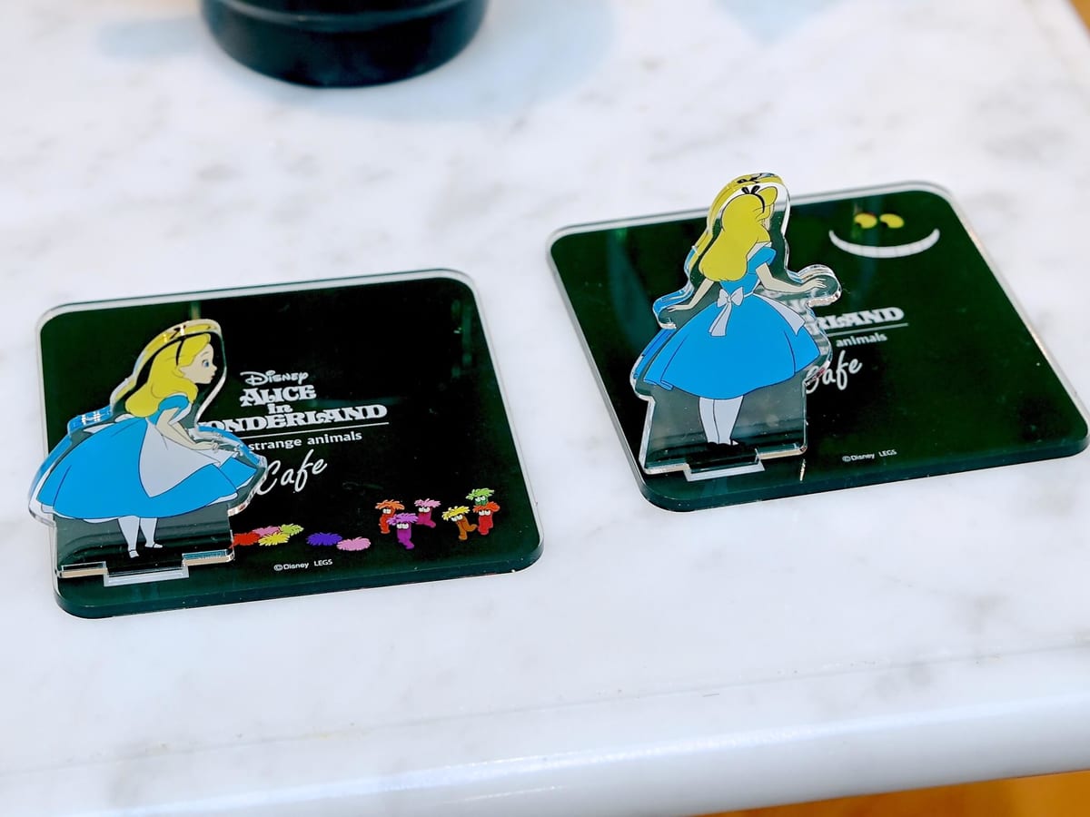 ドリンクに付けられるアリスのアクリルコースターはランダム2種です。
