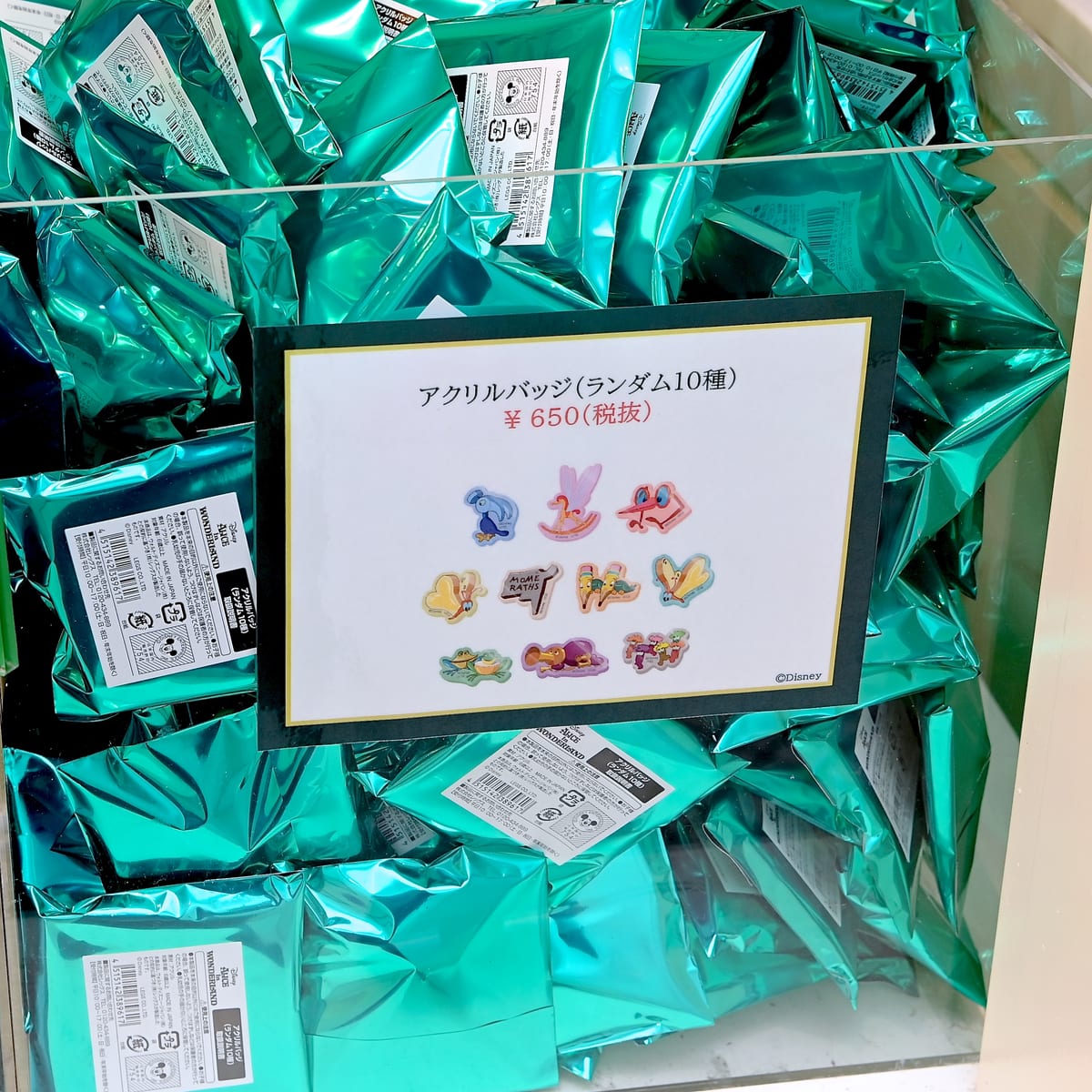「アリス」をはじめとした人気キャラクター7種のうち1種がはいったブラインドアクリルキーホルダー。
