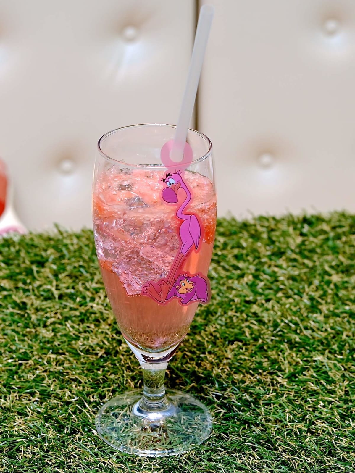 「フラミンゴ」と「ハリネズミ」をモチーフにしたピンクグレープフルーツソーダ。