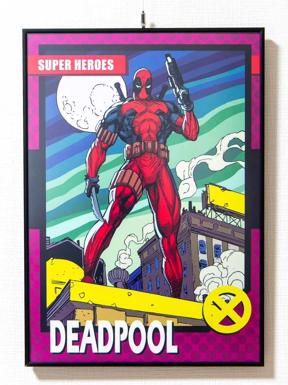 満月をバックに武器を構える「デッドプール」が勇ましいデザインと