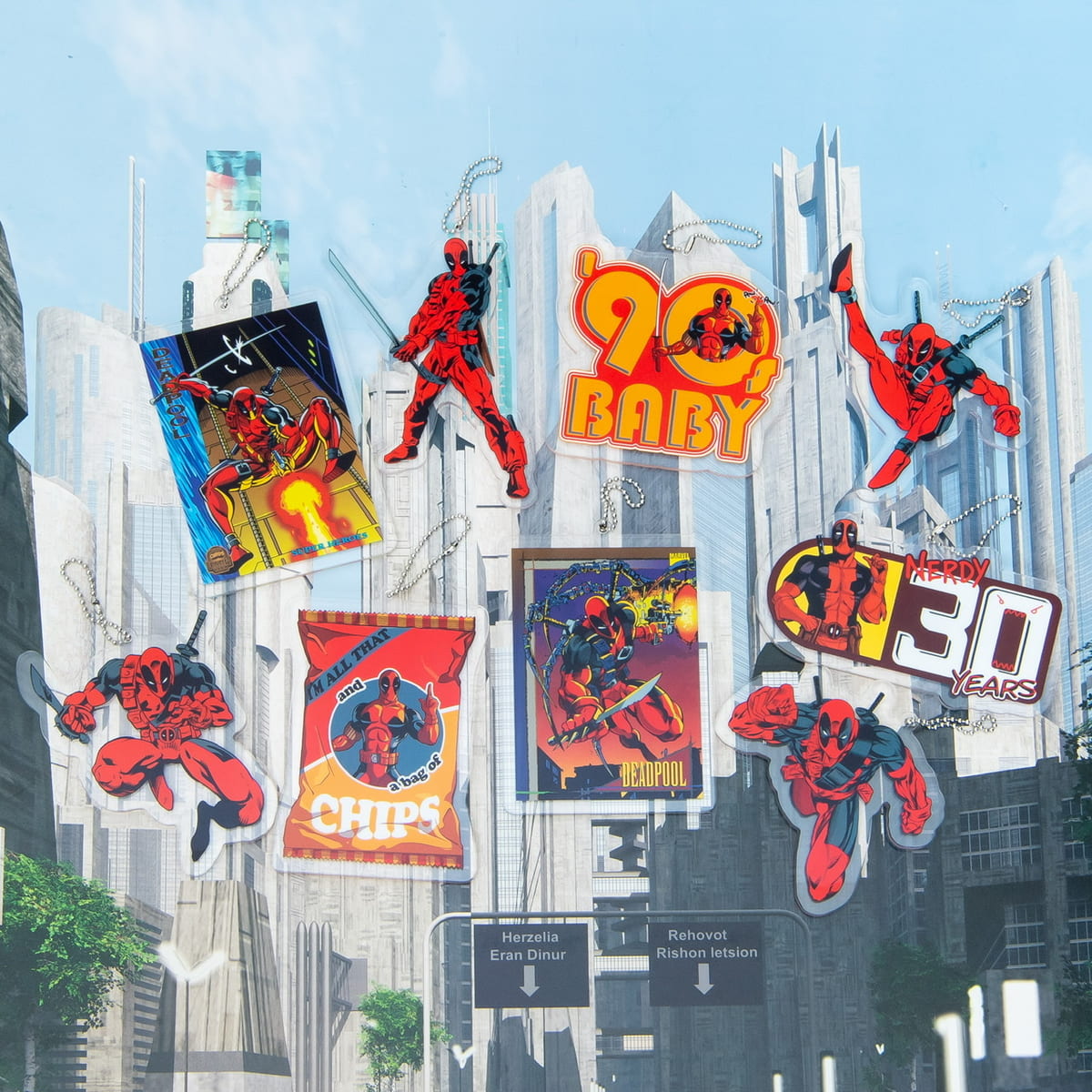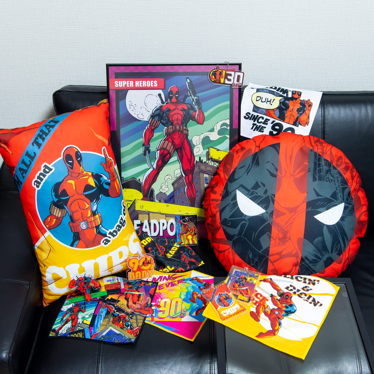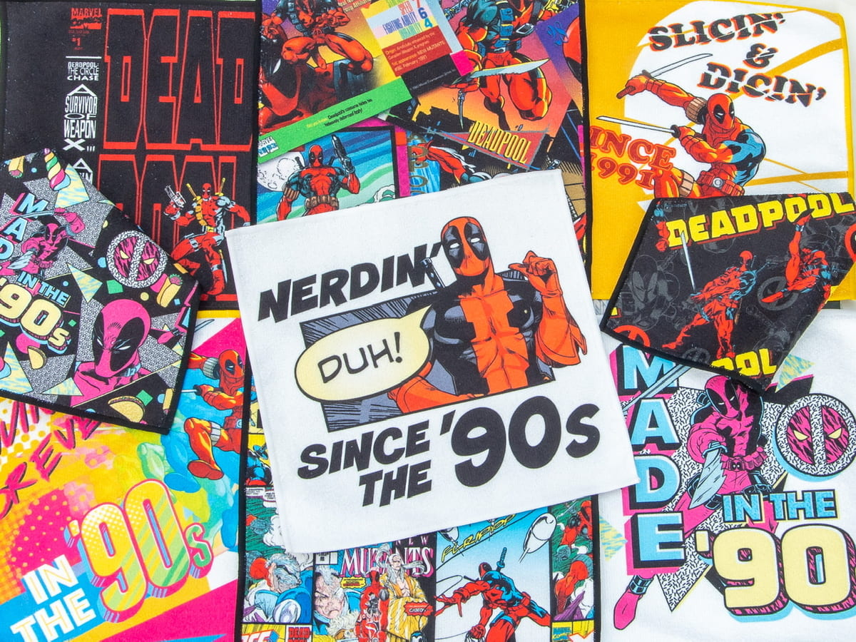 「デッドプール」30周年の記念アートなどが使用された、ポップでクールなデザイングッズが盛りだくさん。