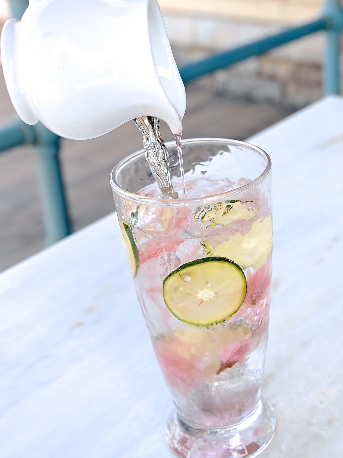 焼酎、炭酸水、すだち、桜の塩漬け入り。