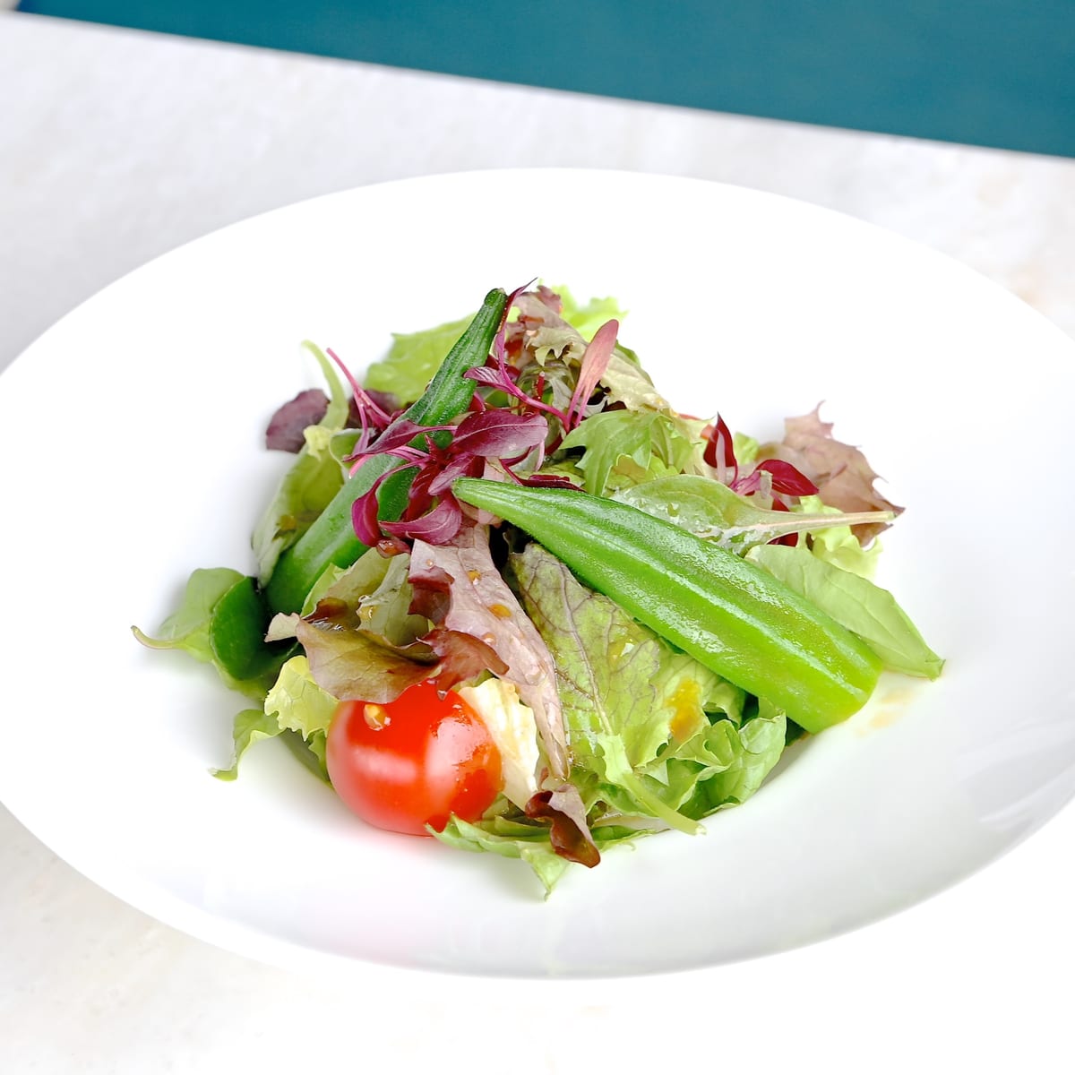 さっぱりドレッシングでいただく彩りのきれいなガーデンサラダ。