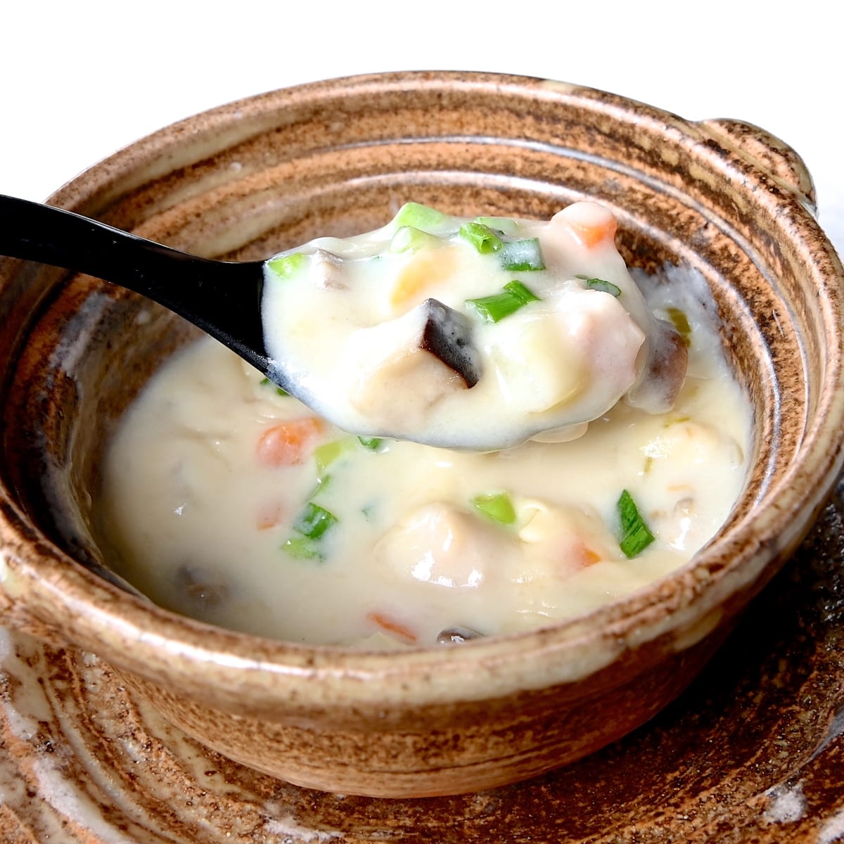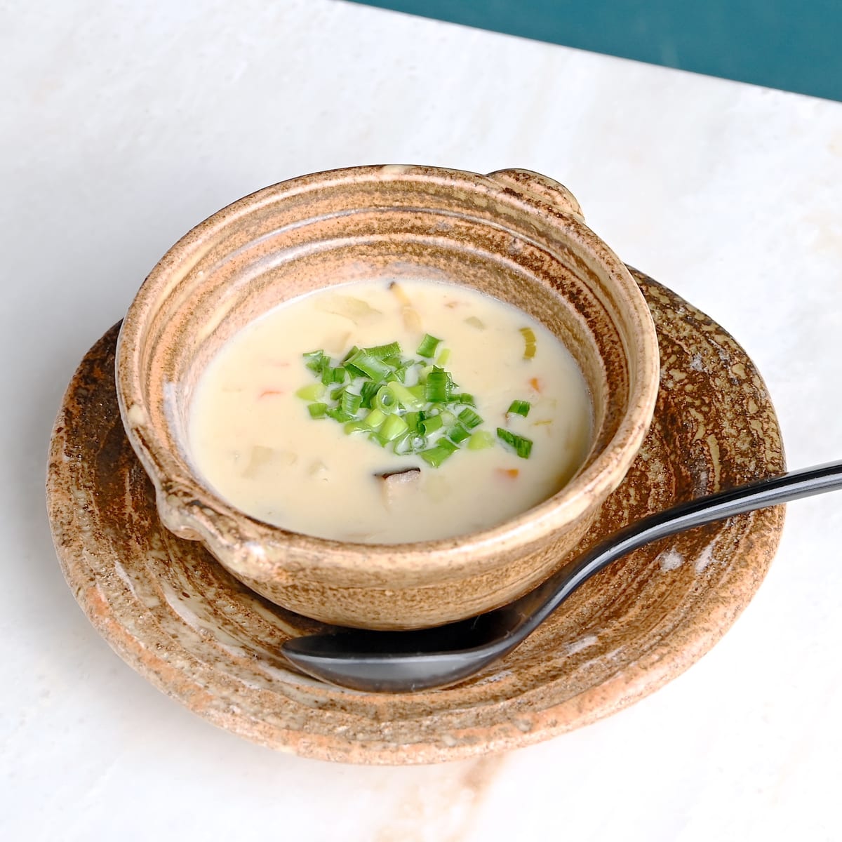 日系移民チャーリー特製の味噌入りクラムチャウダー。