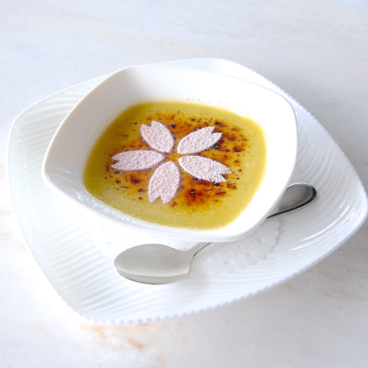 レストラン櫻らしく、さくら模様がかわいいクレームブリュレ。
