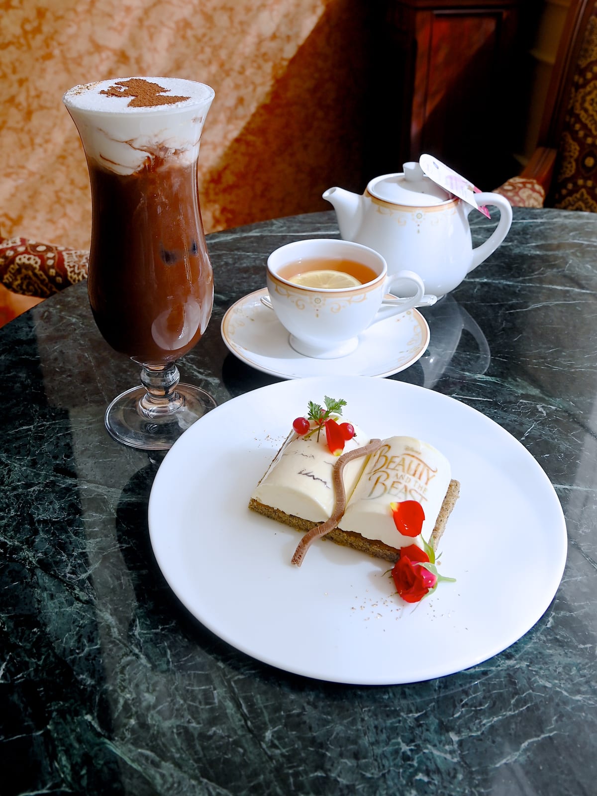 『美女と野獣』の「ベル」モチーフ!ドリーマーズ・ラウンジ オリジナルコーヒー(アイスカフェモカ ア・ラ・ディズニー)