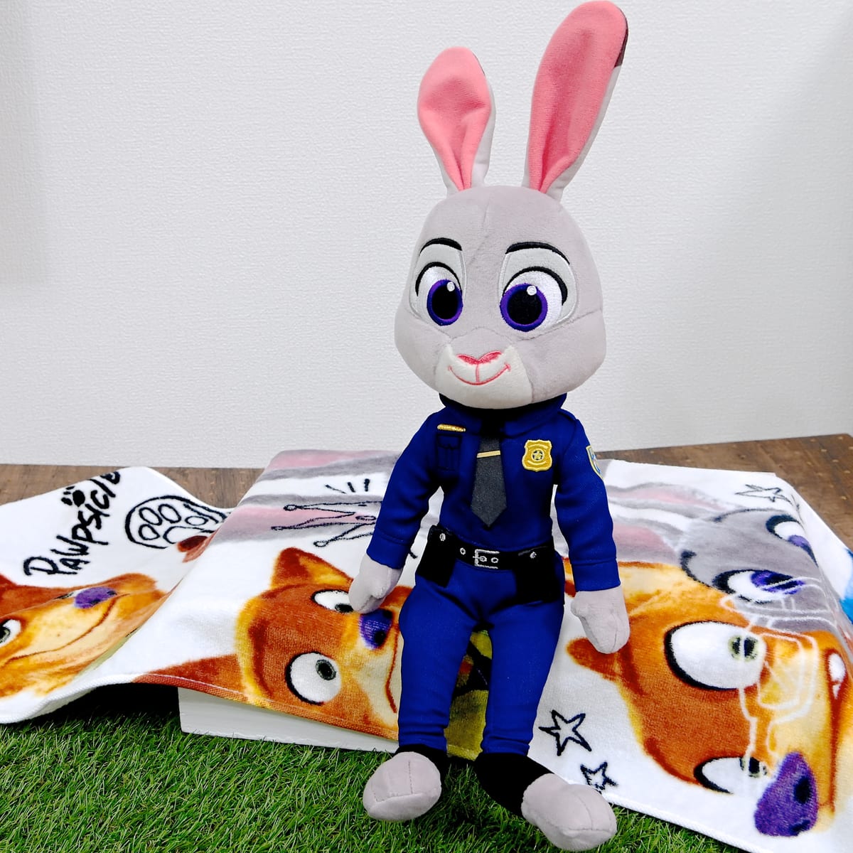 ジュディ・ホップスとニック・ワイルドが日常で撮ったセルフィをモチーフにしたデザインのフェイスタオル。