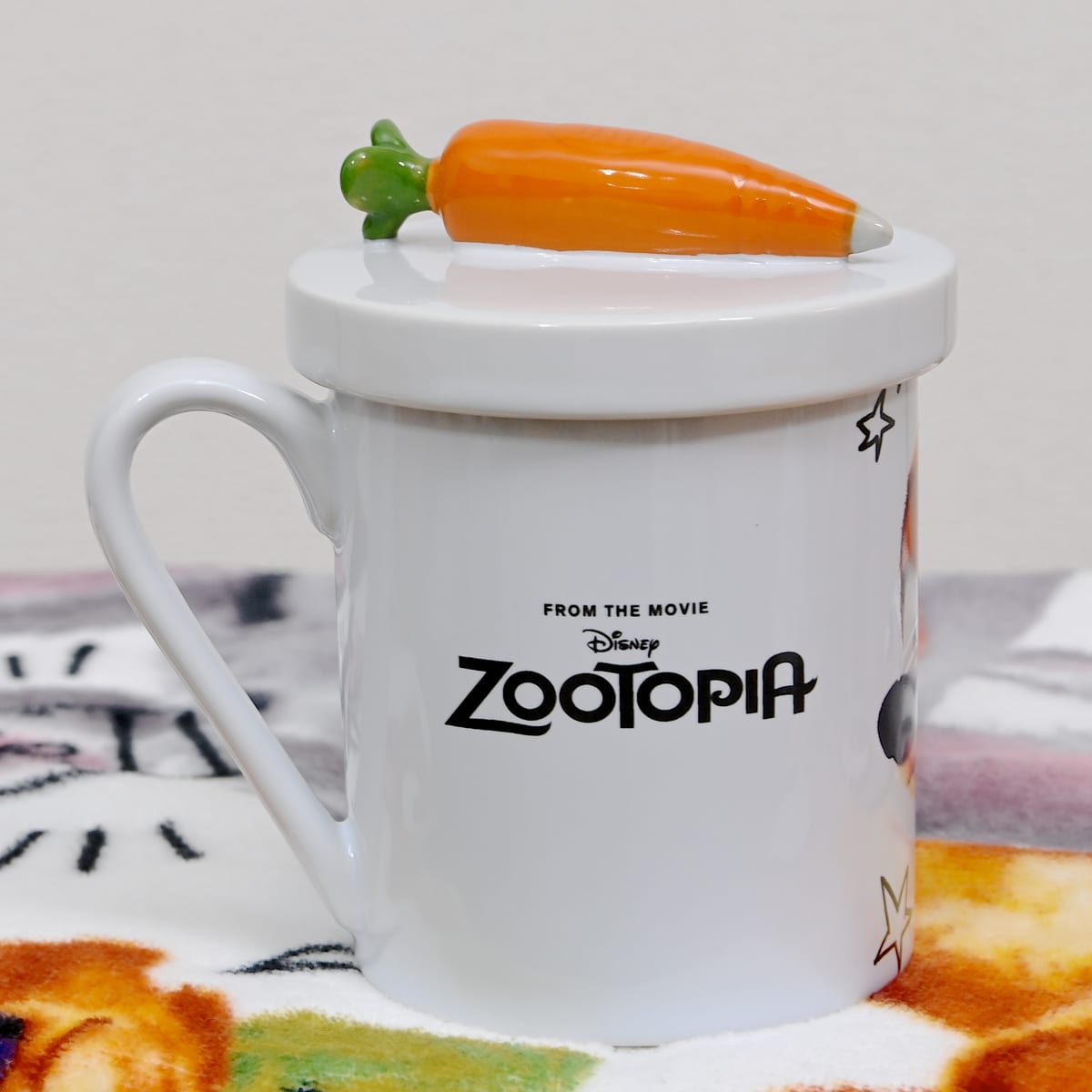 アップで撮った「ジュディ・ホップス」と「ニック・ワイルド」がデザインされた蓋付きマグカップ☆