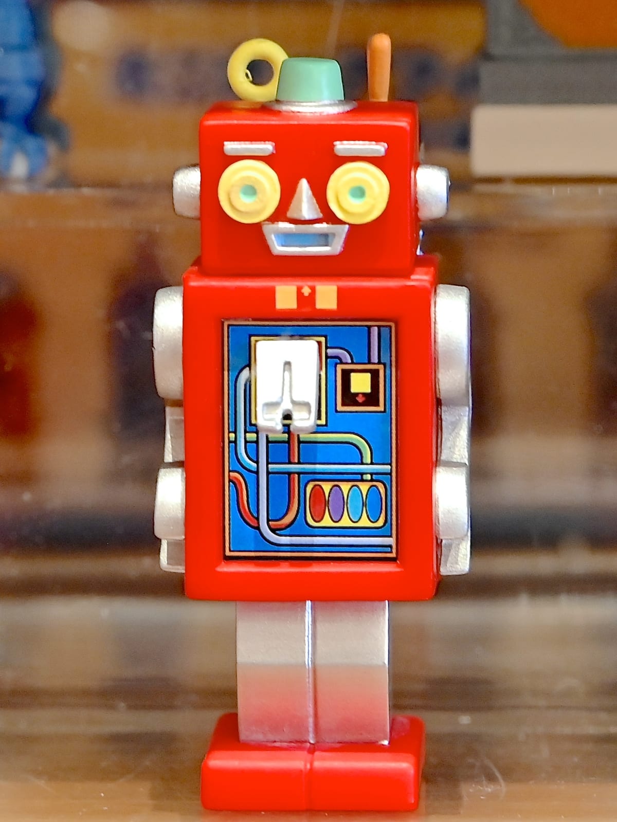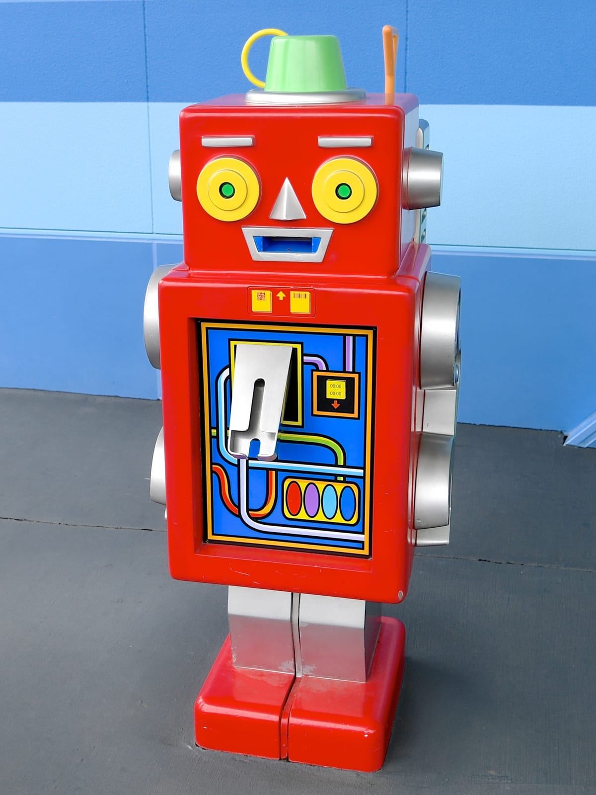 レトロかわいい赤いロボット型のファストパス発券機です。
