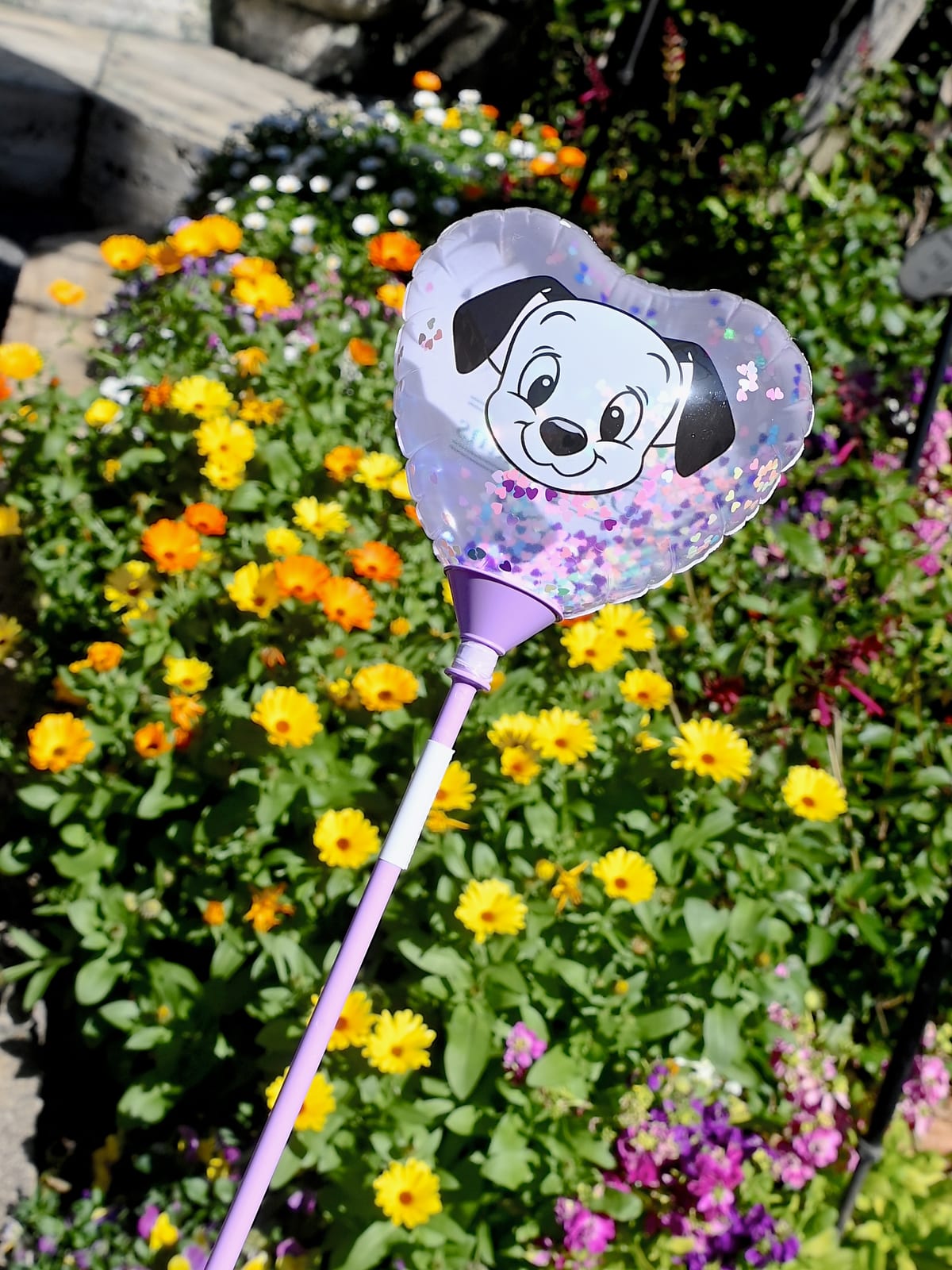 『101匹わんちゃん』がデザインされたハート型のスティックバルーン。