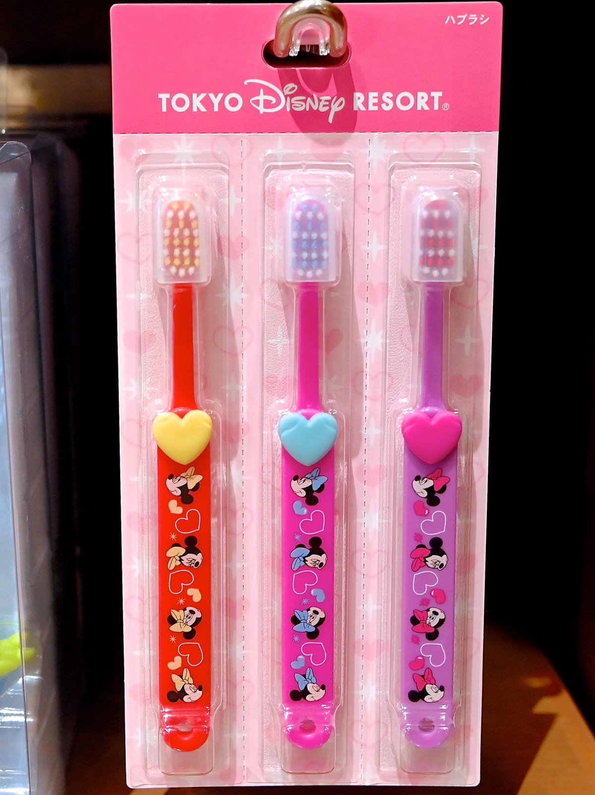 ミニーマウスのお顔がデザインされたカラフルなハブラシセット。