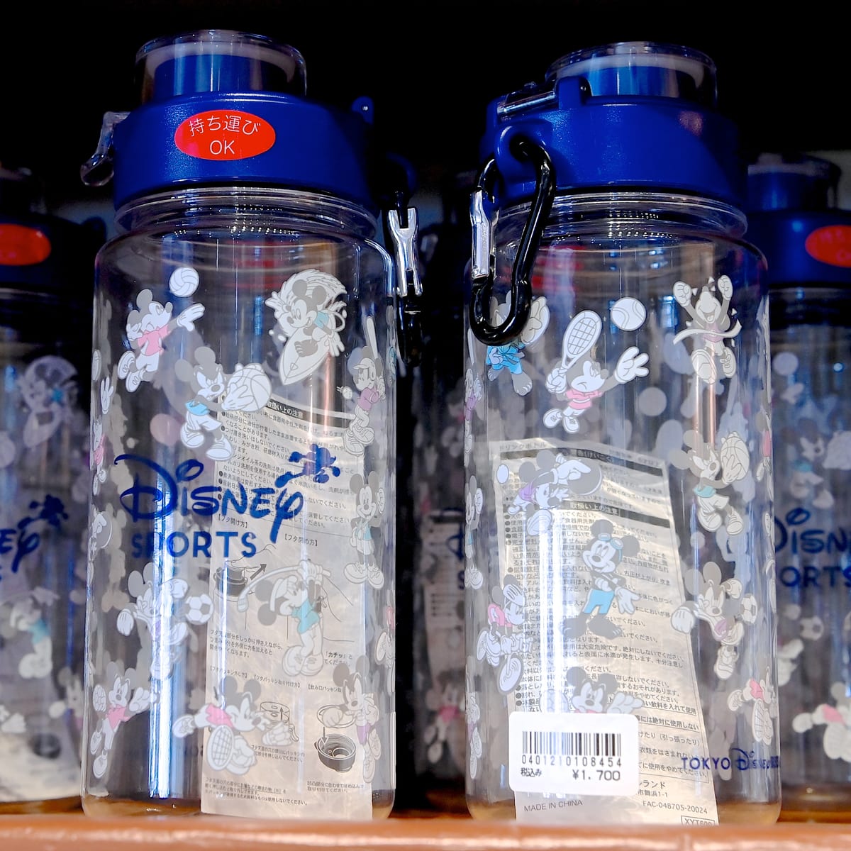 スポーツをしているミッキーマウスがデザイされたドリンクボトル。