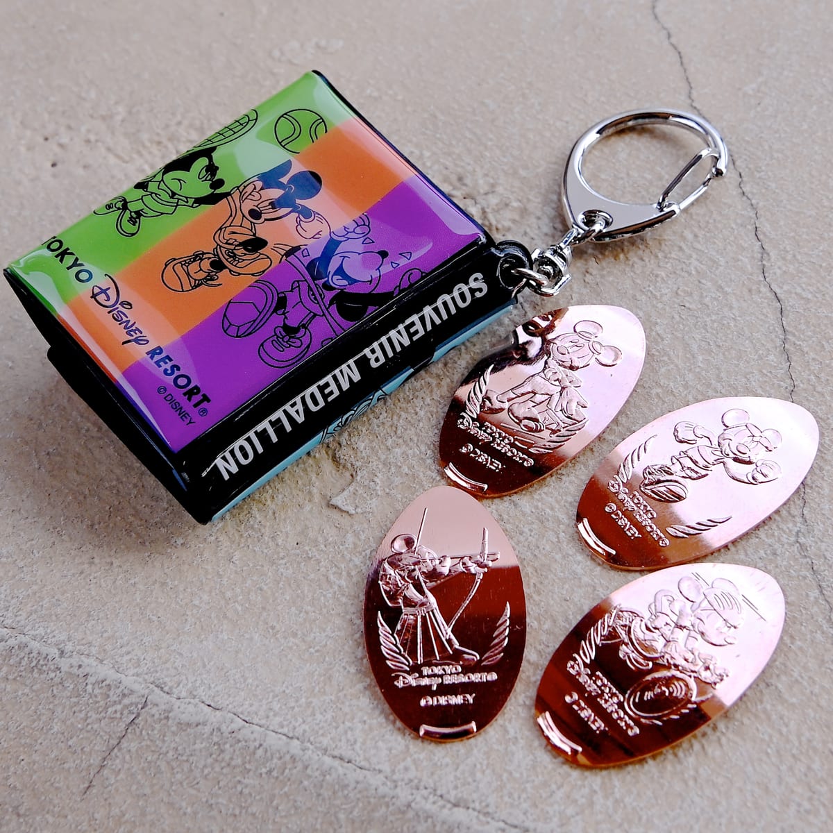 ディズニーリゾートライン全4つのステーションに「スポーツをするミッキーマウス」デザインのスーベニアメダルが各1種ずつ販売されています☆