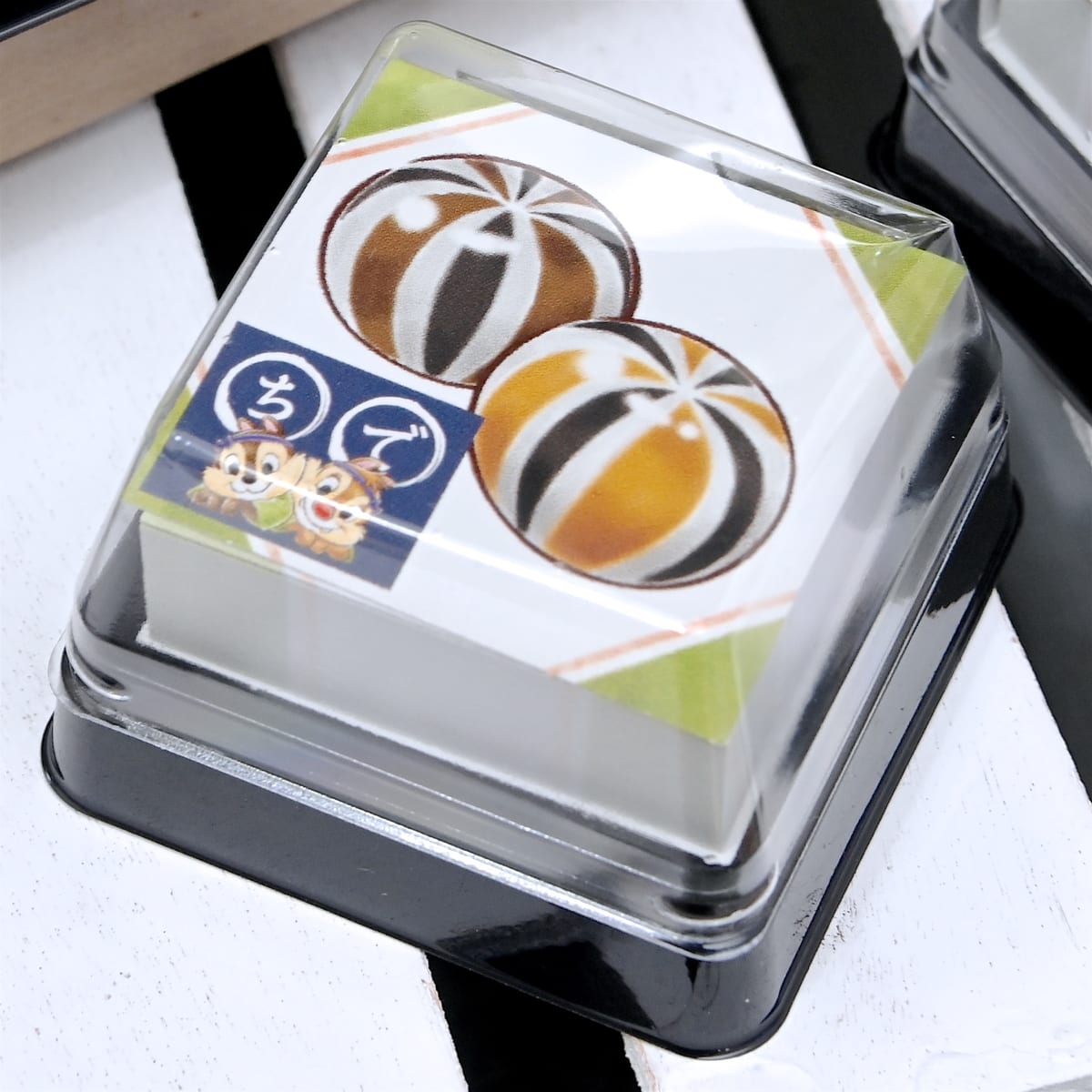 チップとデールモチーフの飴玉やミッキーマークの焼印がはいったお団子などが総柄でデザインされています。