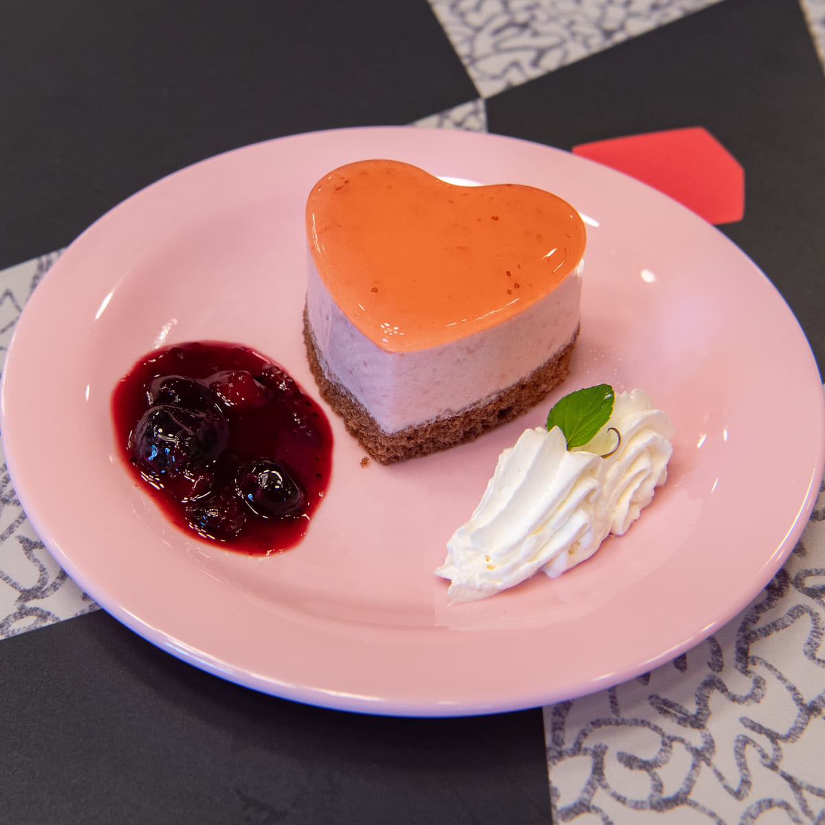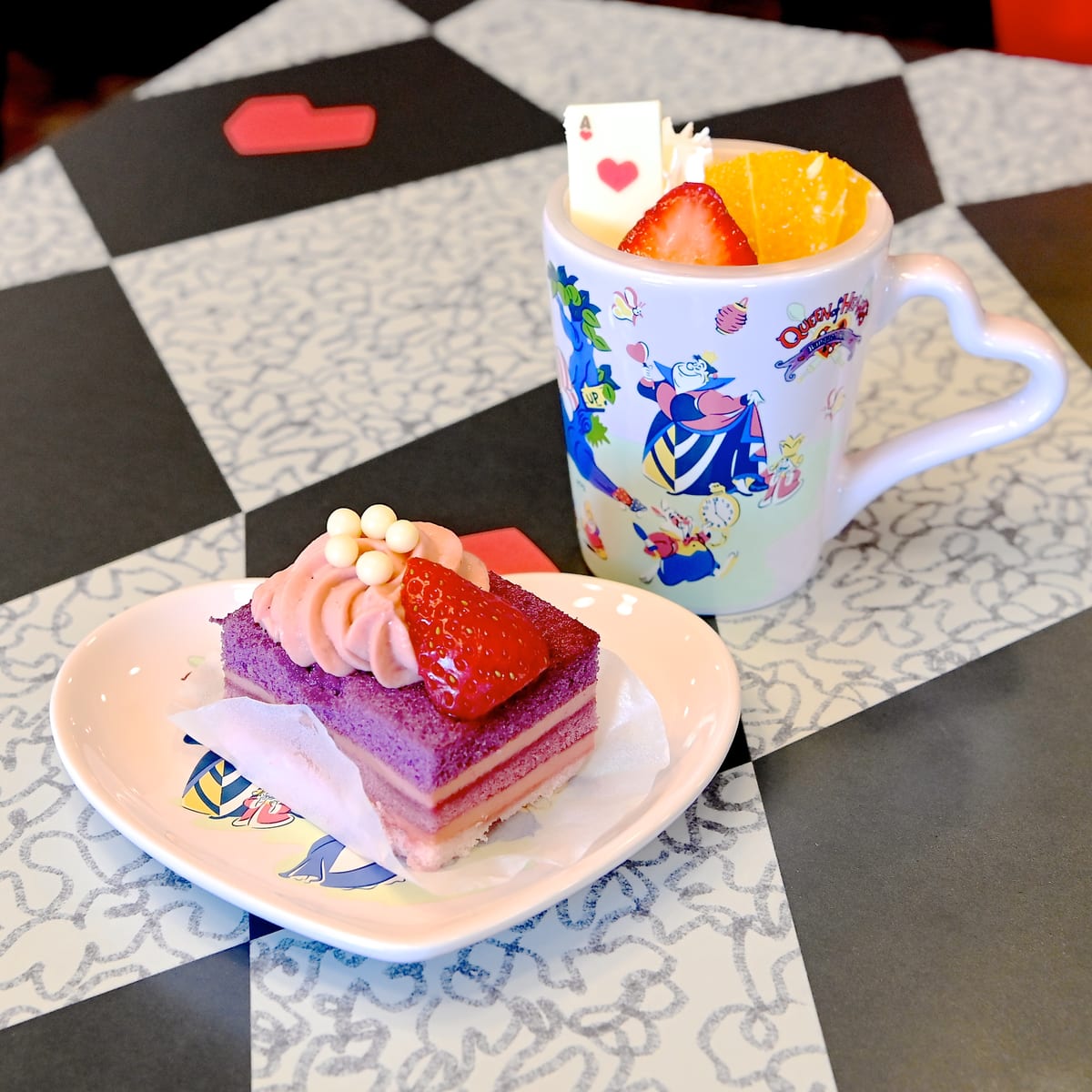 そんな『ふしぎの国のアリス』の世界観が楽しめる店内でいただけるのがハートの女王らしくハートモチーフがかわいいメニュー。