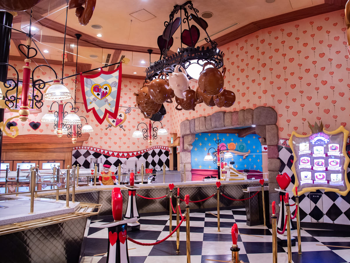 ディズニー映画『ふしぎの国のアリス』に登場するハートの女王のお城をイメージしたレストラン!