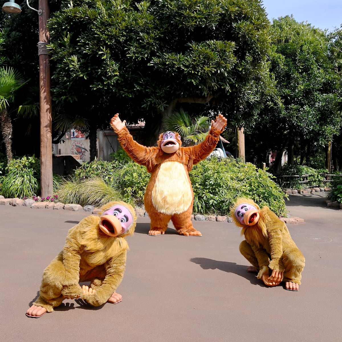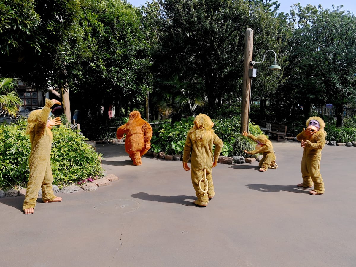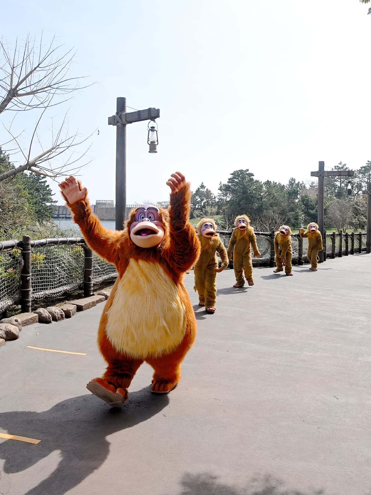 陽気なサルの王様「キング・ルーイ」と「モンキー」たちはお散歩をしながらゲストにご挨拶☆