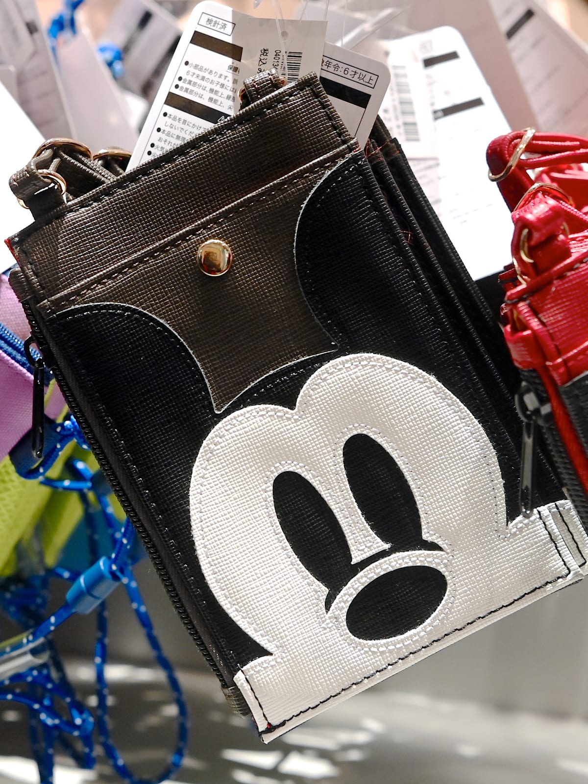 ミッキーマウスのお顔がデザインされた縦長のポシェット。