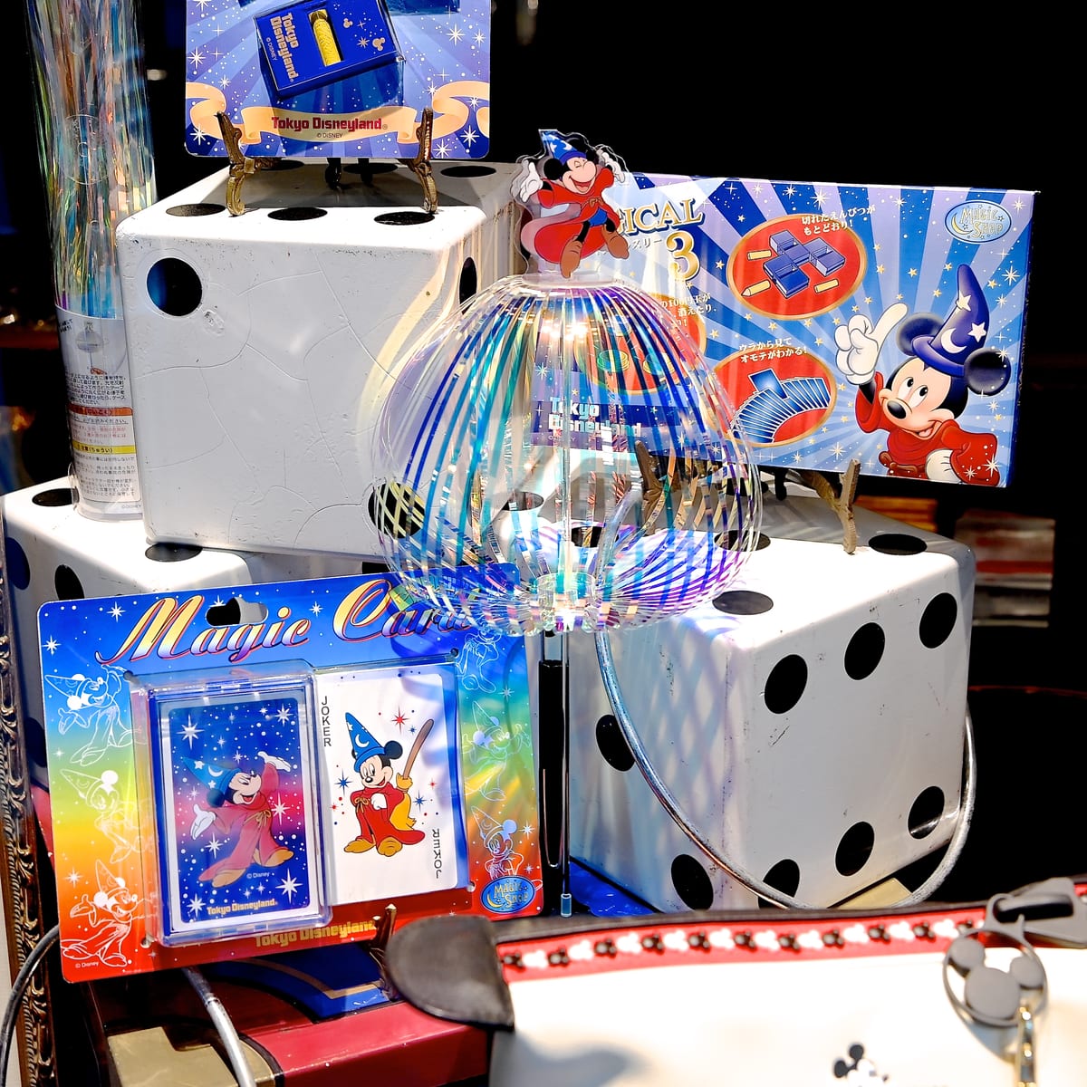 東京ディズニーランド/ワールドバザールにある「マジックショップ」、東京ディズニーシー/アラビアンコーストにある「アグラバーマーケットプレイス」ではマジックグッズを種類豊富に販売中。