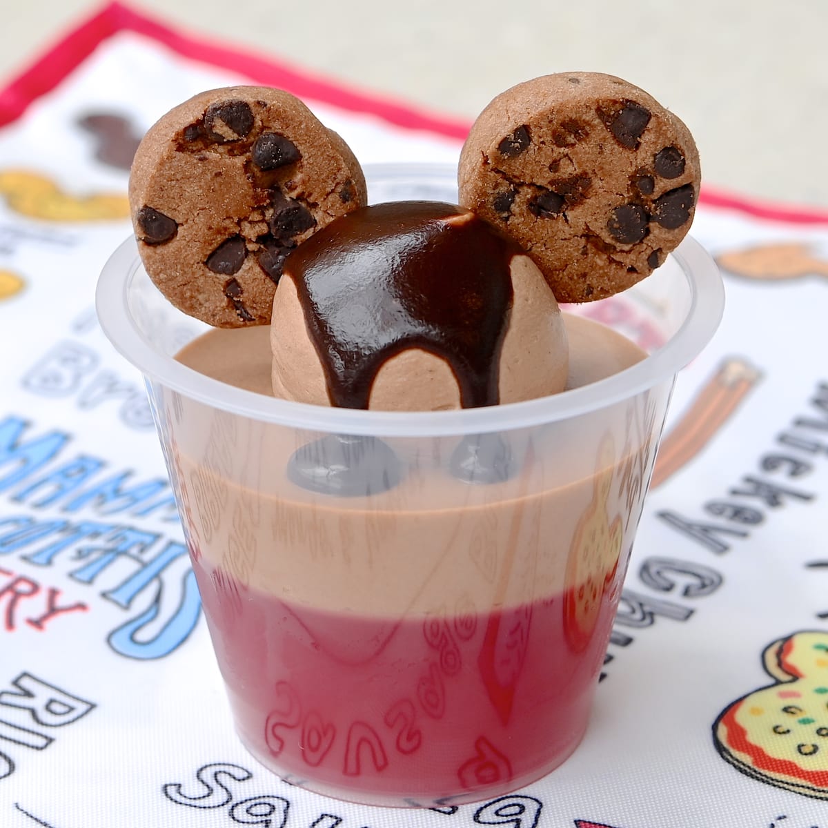 スウィートなチョコムースとミックスベリーゼリーが層になったミッキーカラーのカップデザートです。