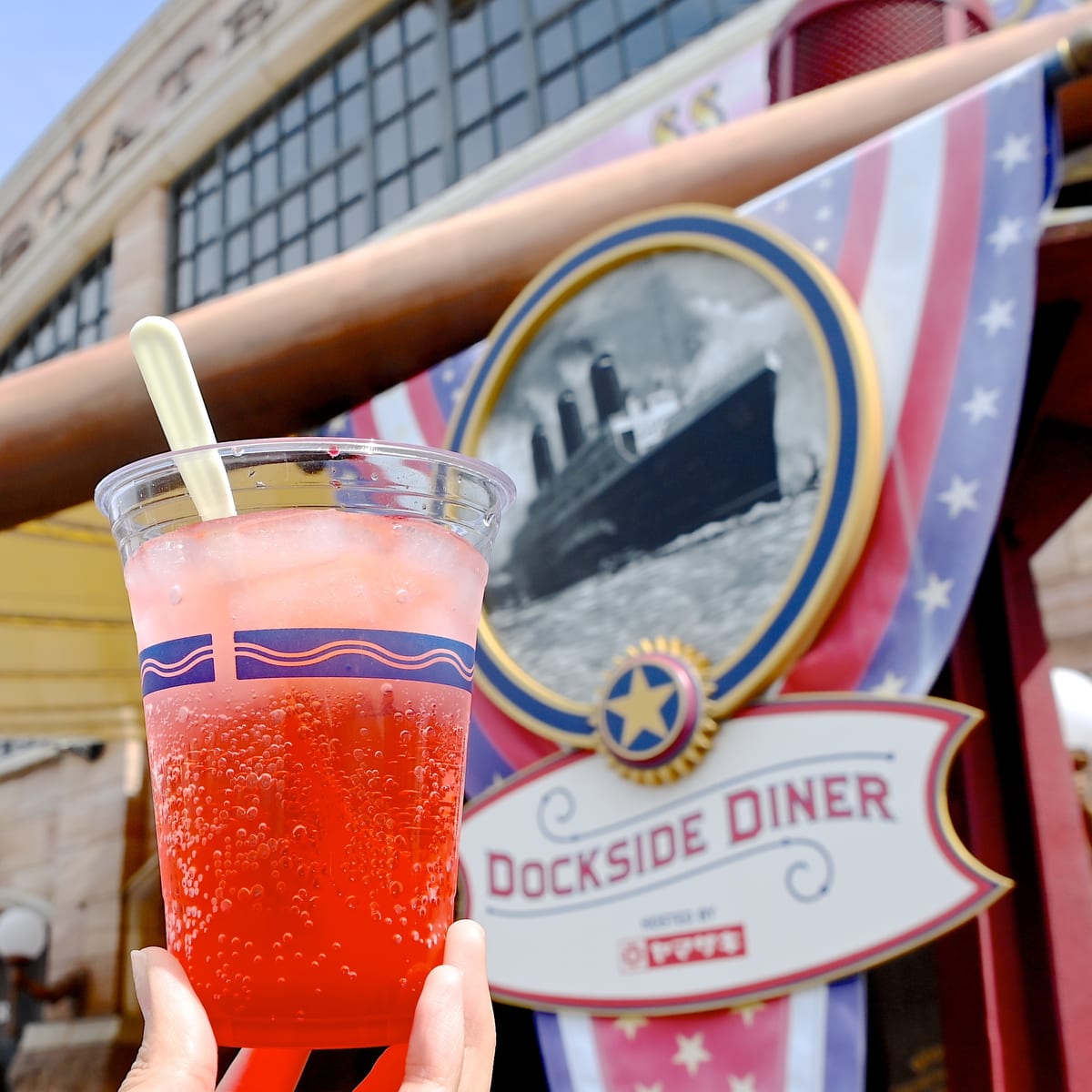 アメリカンウォーターフロントにあるレストラン「ケープコッド・クックオフ」では初となるアルコールドリンク(スパークリングドリンク(ピーチ&マンゴー))の提供がスタートしています。