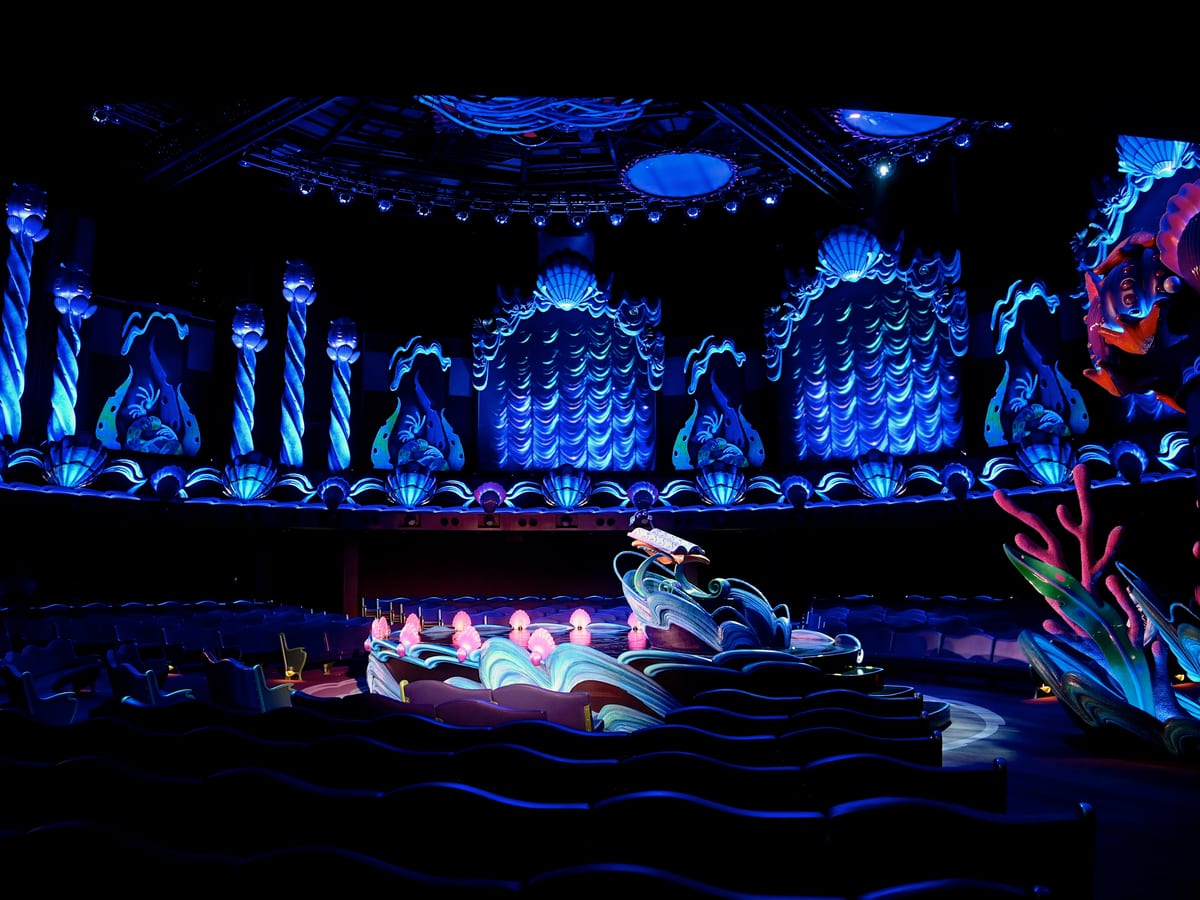 ディズニー映画『リトル・マーメイド』の「アリエル」と仲間たちが登場するミュージカルショー「キング・トリトンのコンサート」が公演されていた、まるで海底にいるかのような空間「マーメイドラグーンシアター」