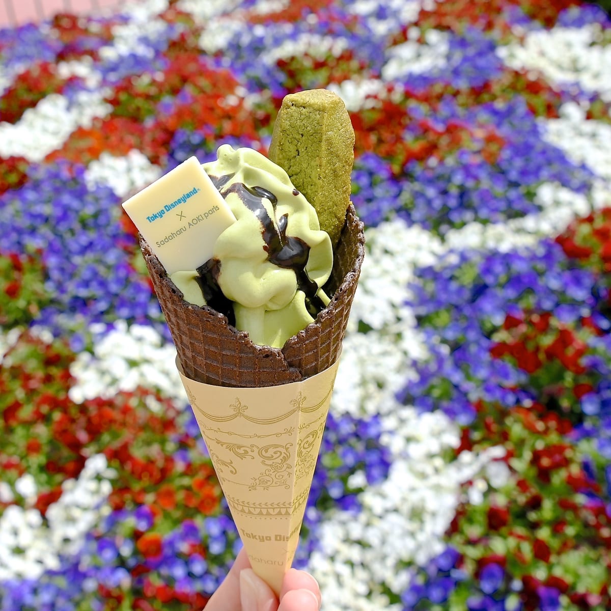 今回は、東京ディズニーランド/ワールドバザールにある「アイスクリームコーン」で提供されているスペシャルソフトクリーム(抹茶&チョコ)を紹介します☆