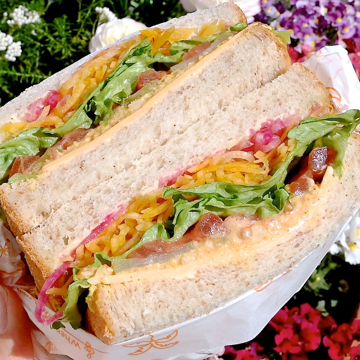 - スパイシーサラダチキンと彩り野菜のサンドウィッチ