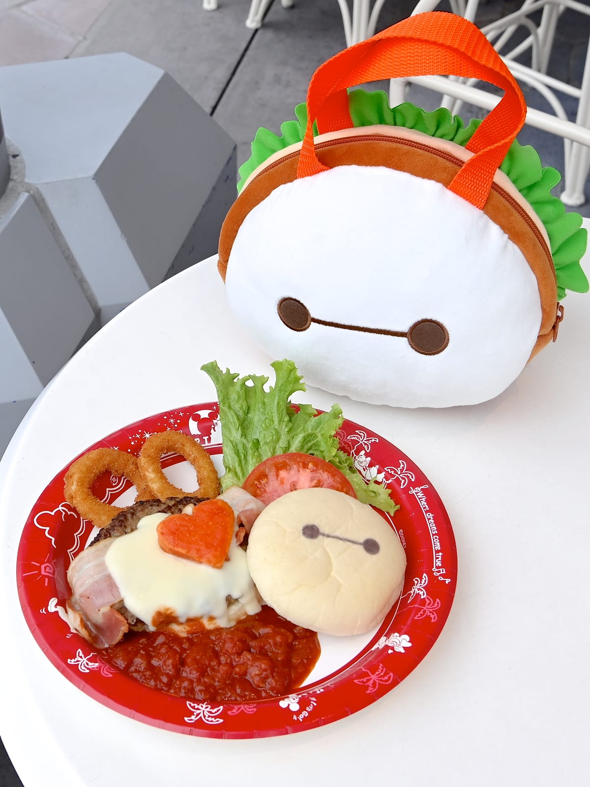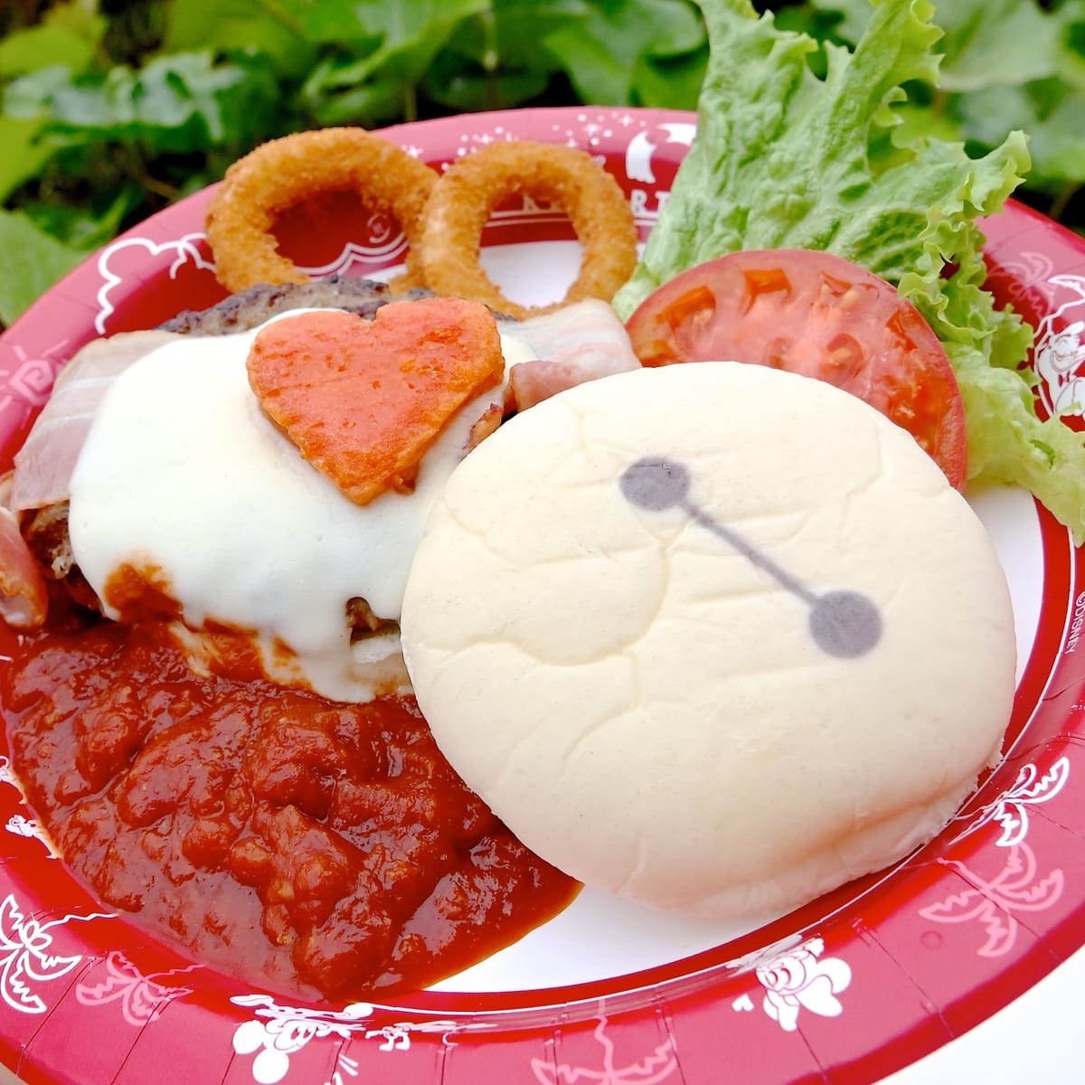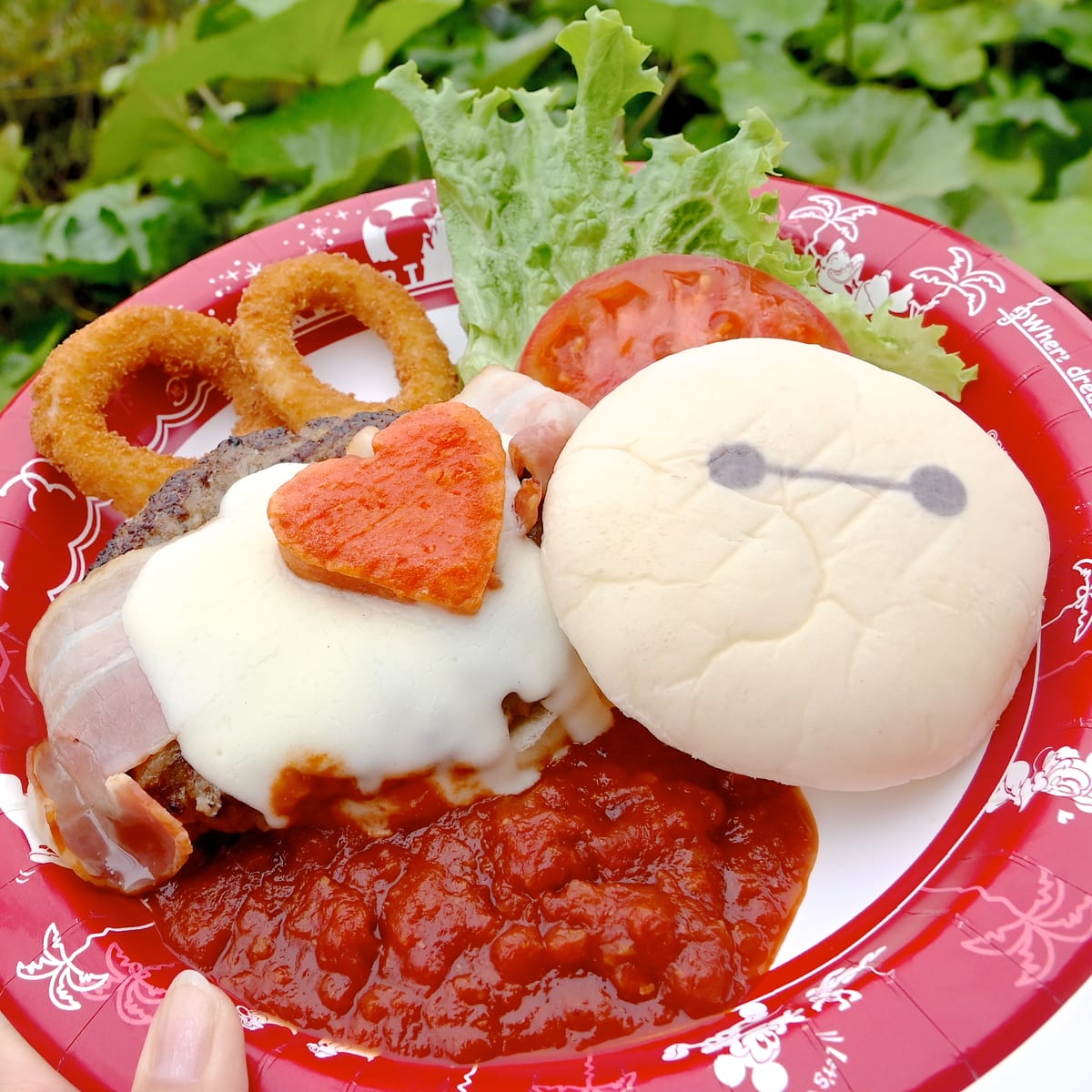 ベイマックスのお顔デザインのバンズがかわいいベーコンバーガー。