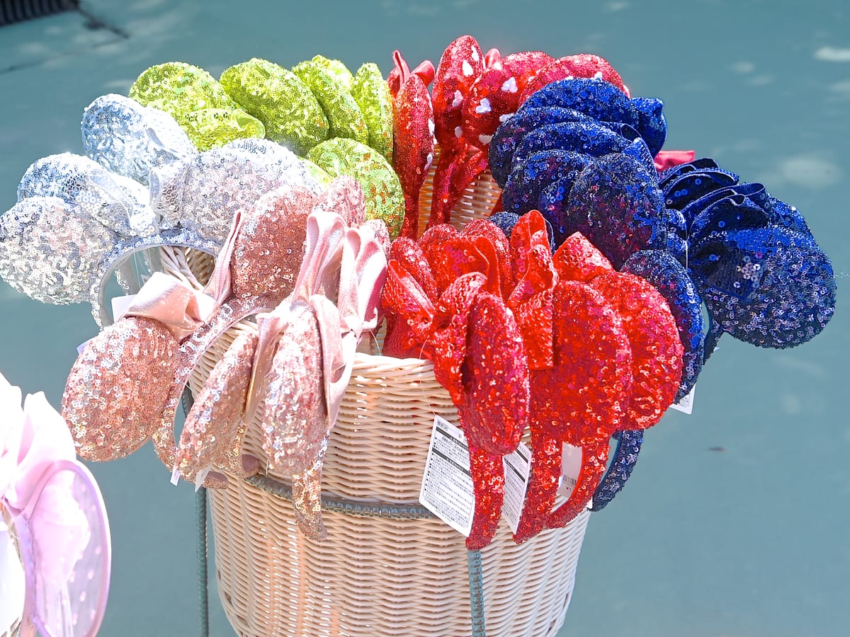 スパンコールデザインのミニーマウスカチューシャに新色が続々と登場中。