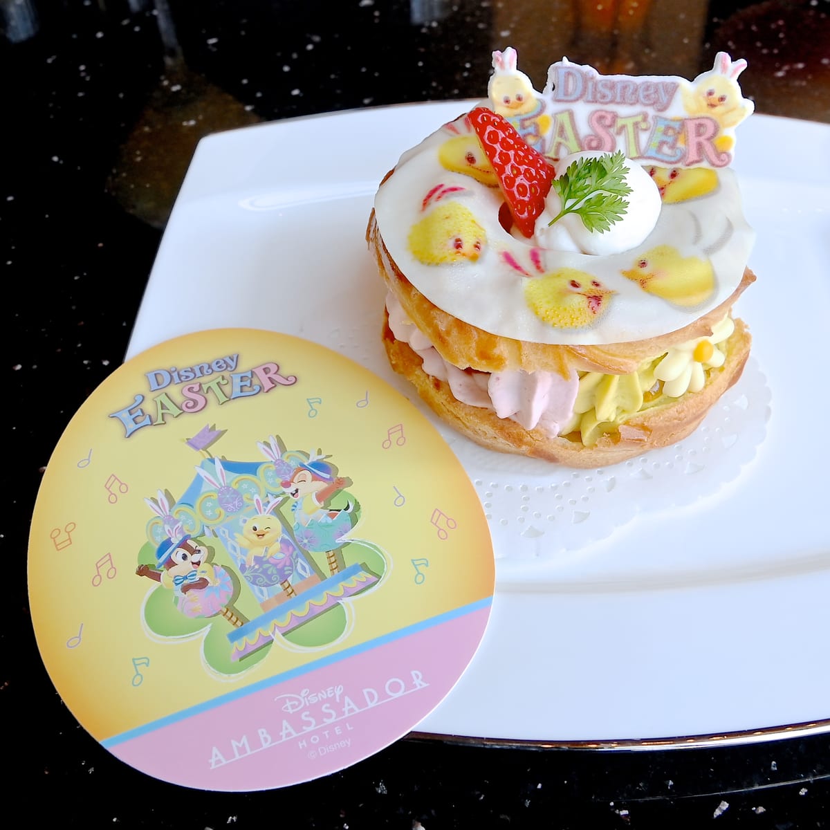 ディズニー・イースターのケーキ(パリブレスト)はカラフルなうさピヨデザイン☆