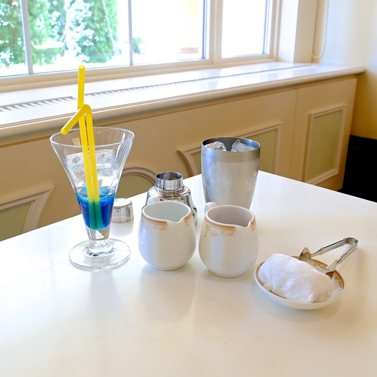 ブルーシロップがはいったグラスに