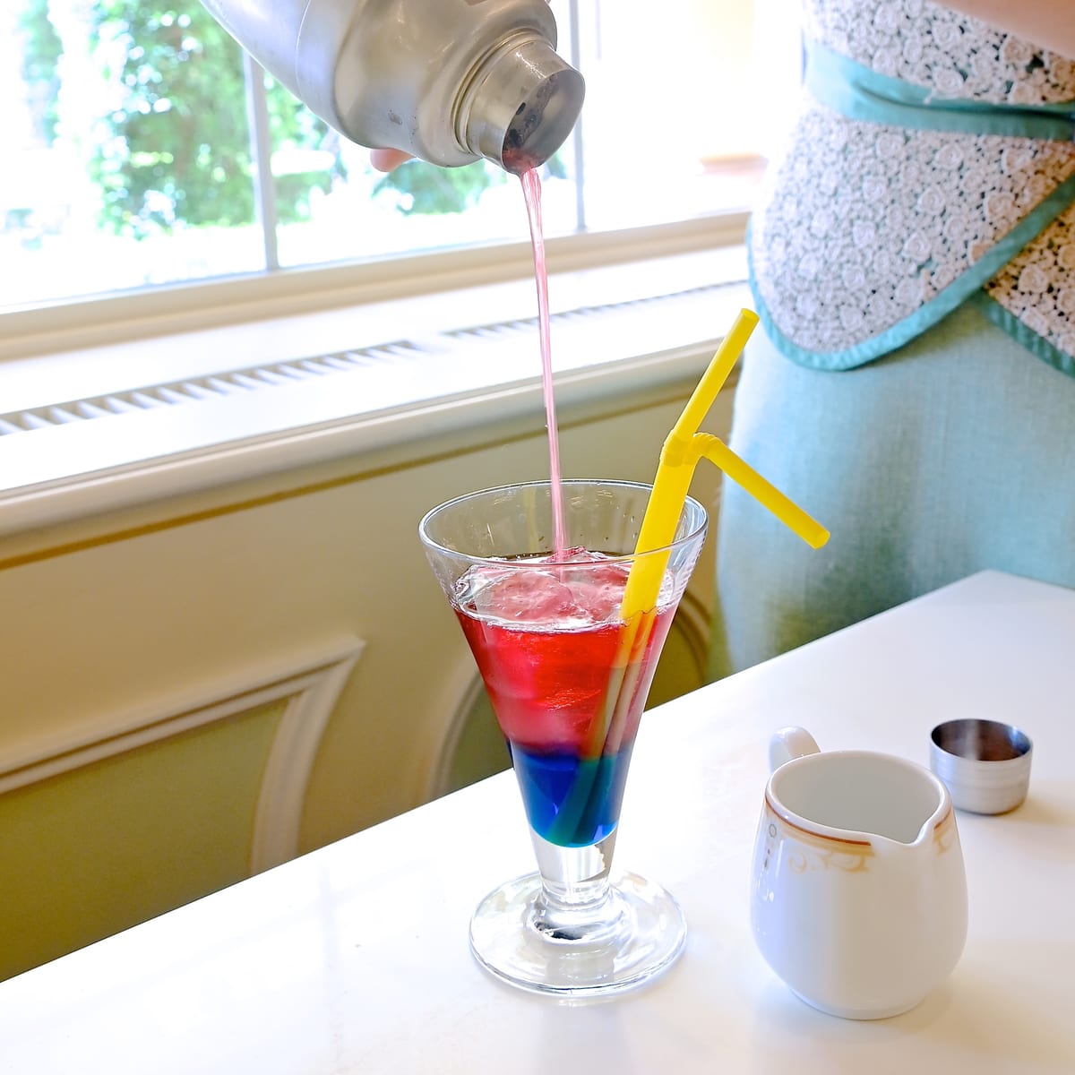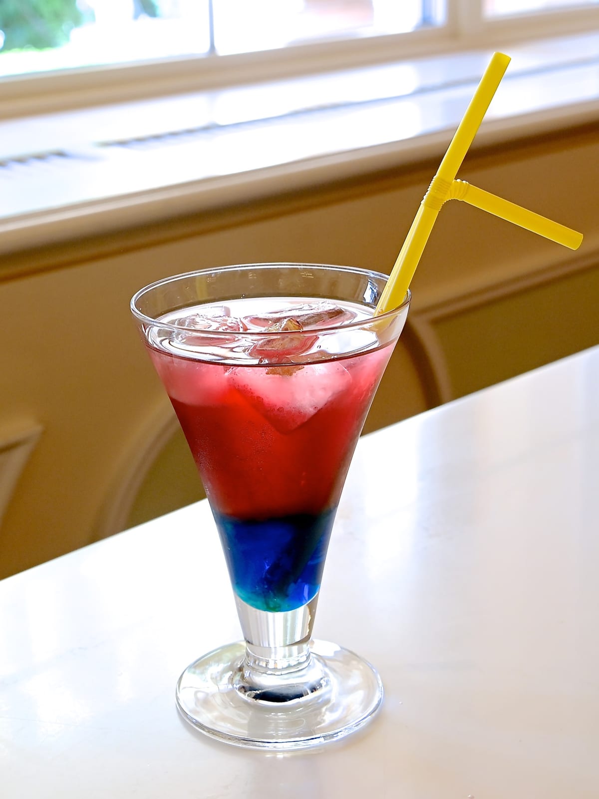 短編『魔法使いの弟子』に登場するソーサラーミッキーのコスチュームカラーである赤と青の2層のドリンクに!