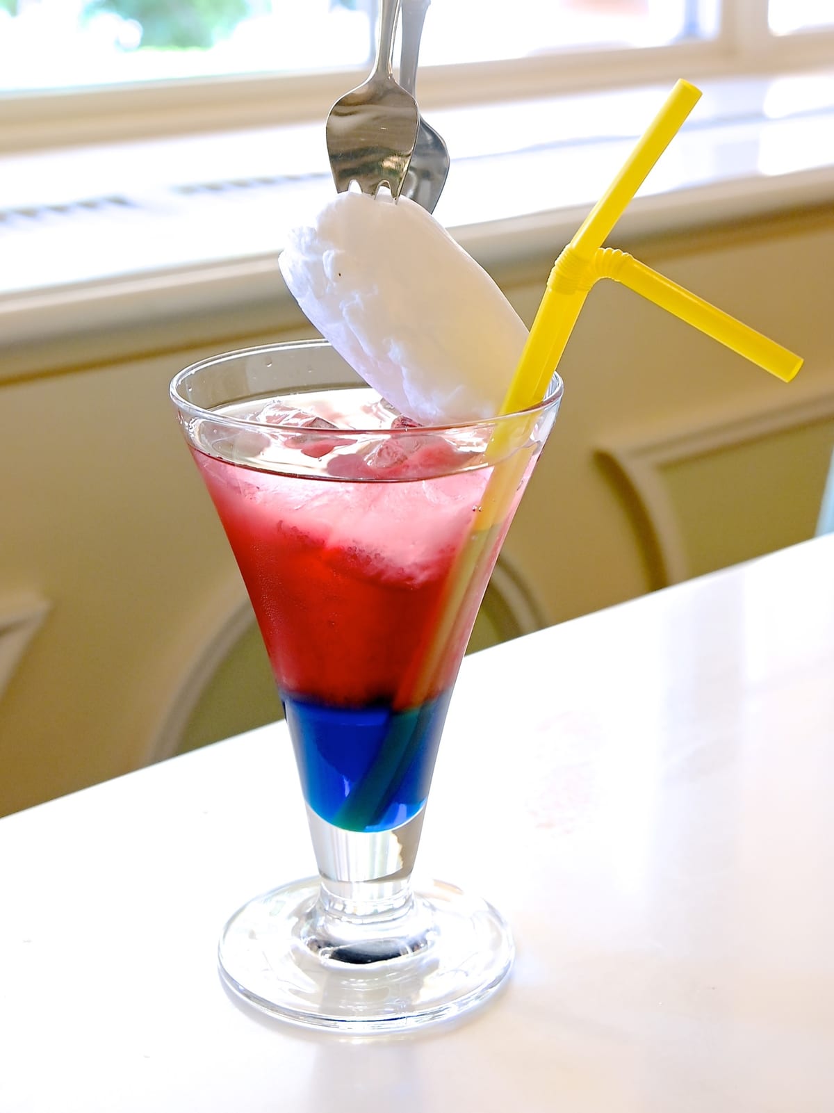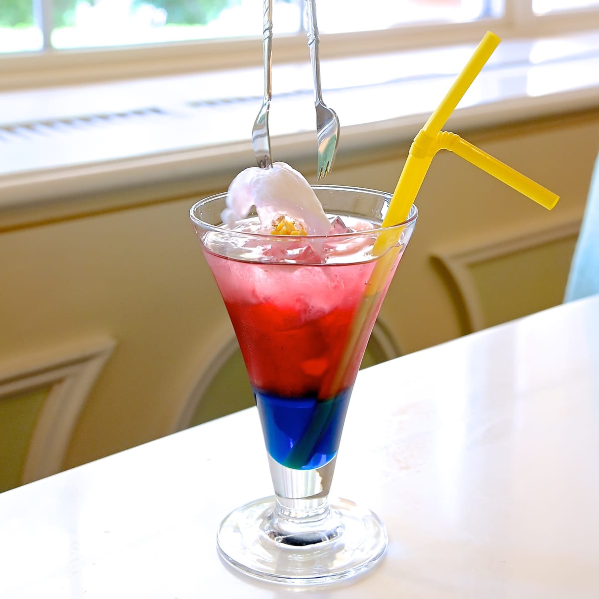 2層の色鮮やかなドリンクにコットンキャンディーをトッピング。
