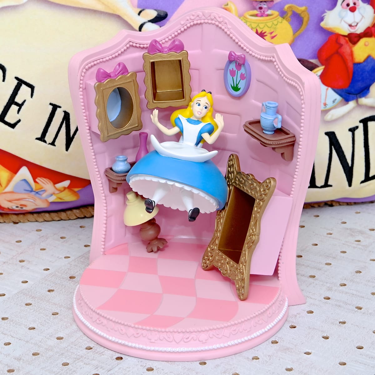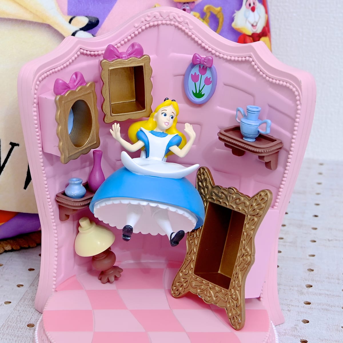 ピンク色の部屋に浮かんでいるアリスがかわいいデザインです。