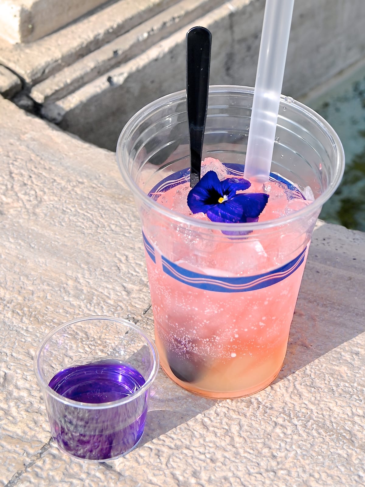 スパークリングカクテル(パッションフルーツリキュール&バタフライピーシロップ)