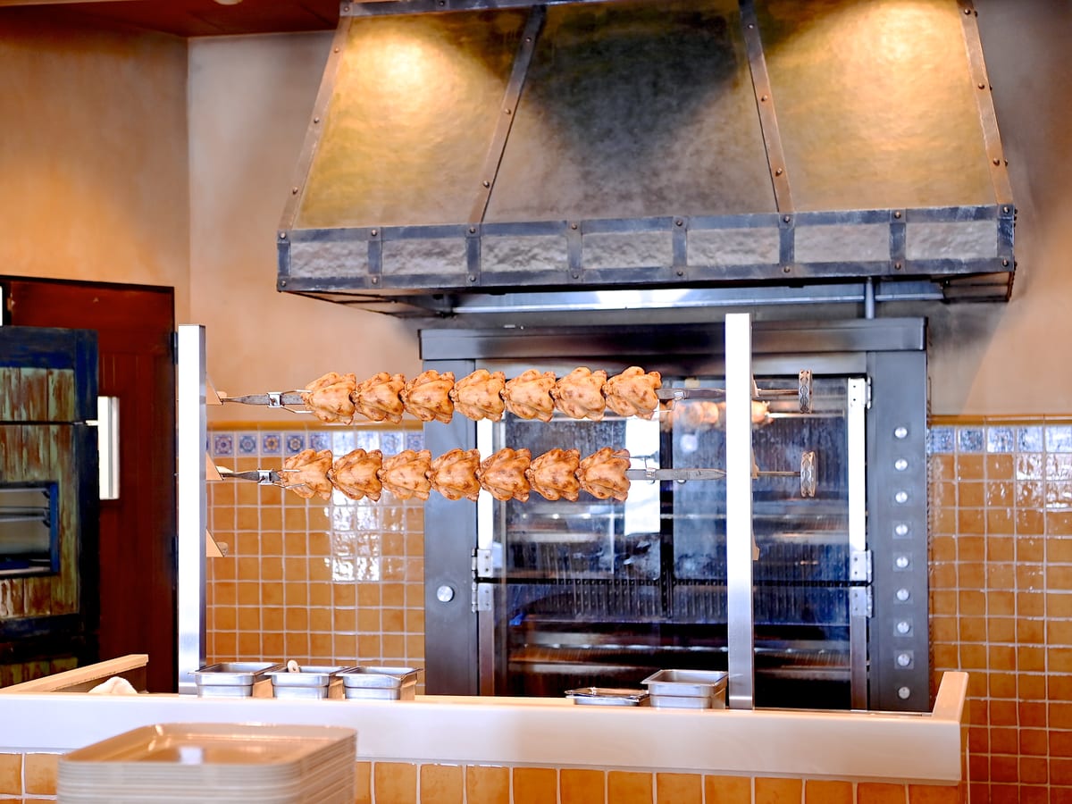 パスタはもちろん、名物のロティサリーチキンなどが楽しめる本格的なレストラン。