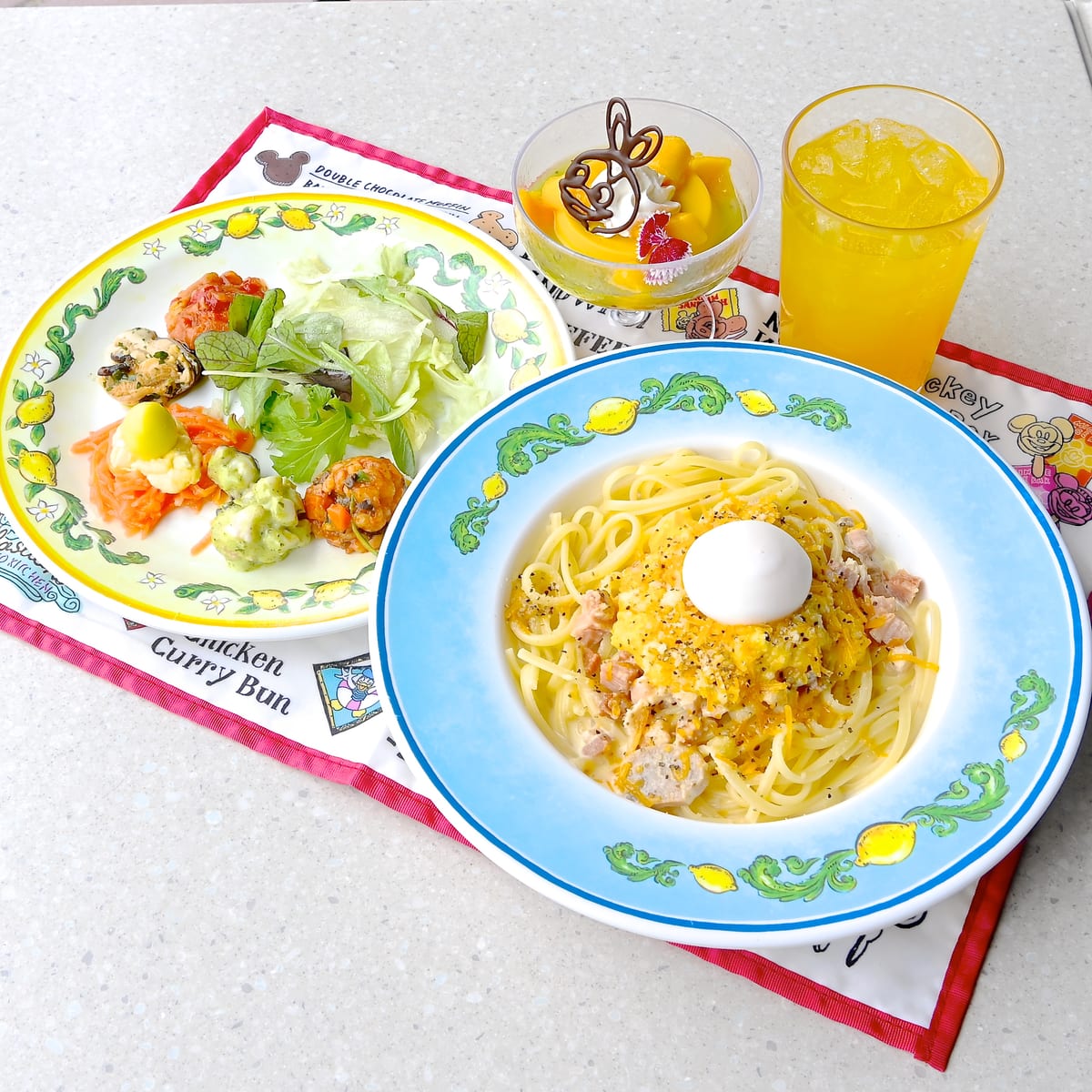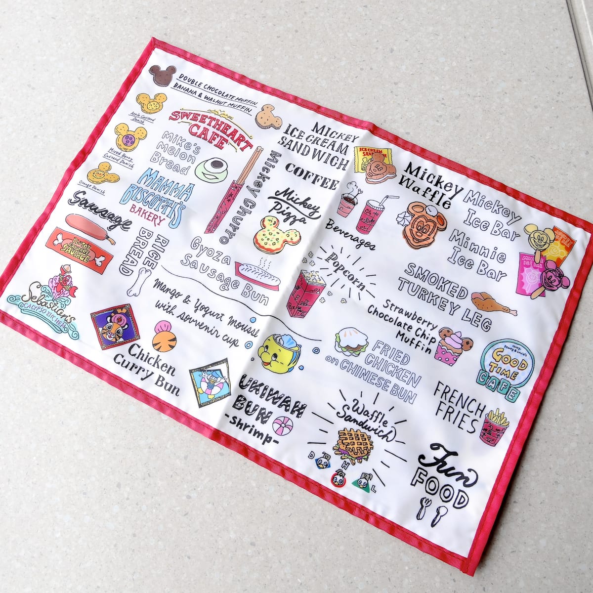 セットにプラス ¥700で人気のパークフードが総柄でデザインされたスーベニアランチョンマットを付けることができます。