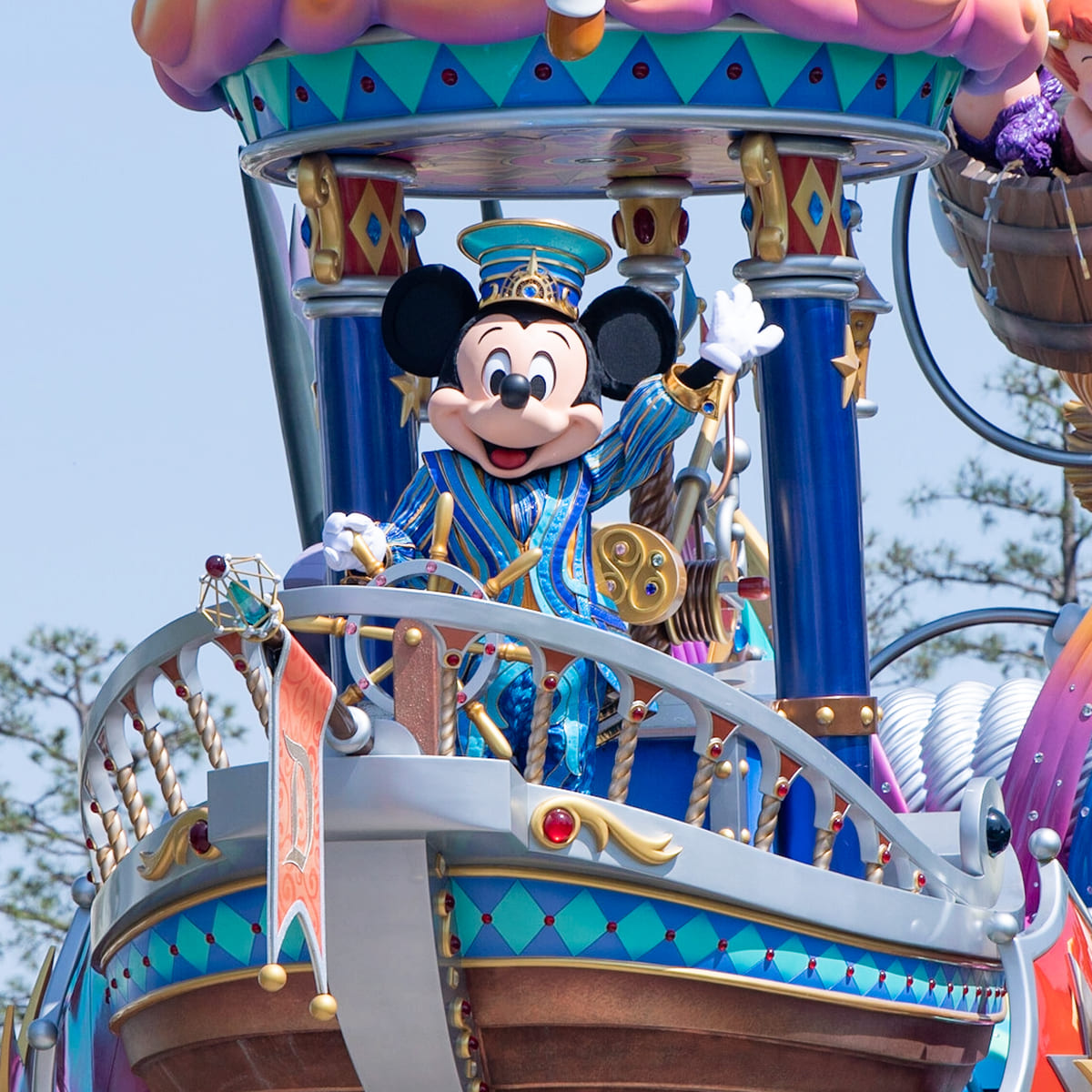 東京ディズニーリゾート35周年“Happiest Celebration!”にあわせ、オープニングを飾った、ミッキーたちが イマジネーションにあふれた夢の世界へゲストを案内する新しい昼のパレード「ドリー ミング・アップ!」