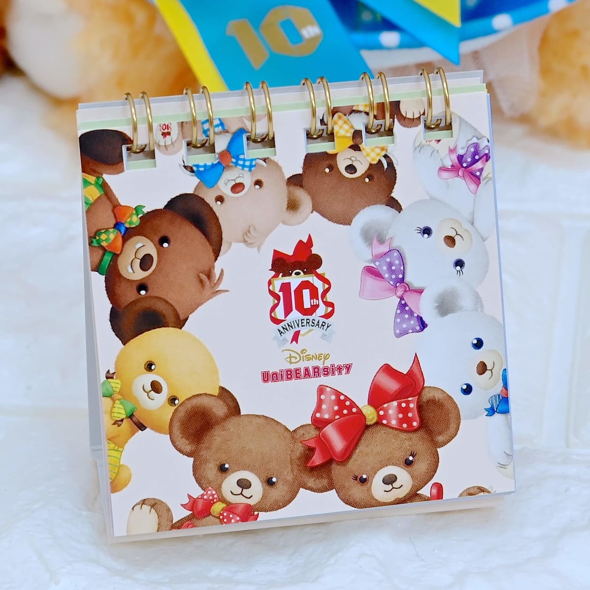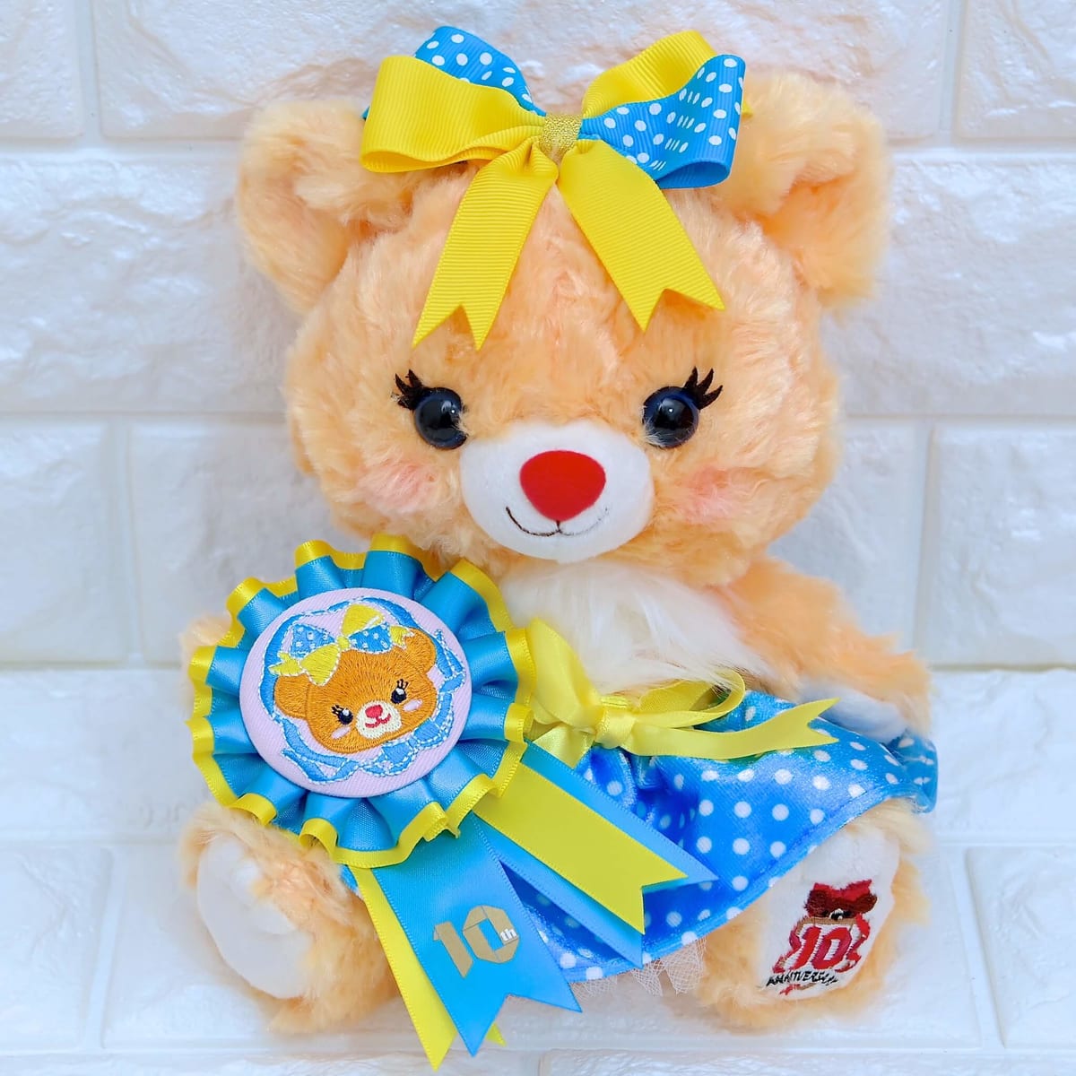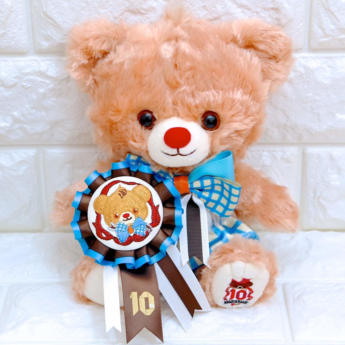 ユニベアシティ10周年を記念して登場したエンブレム入りのアニバーサリーデザインのぬいぐるみ。