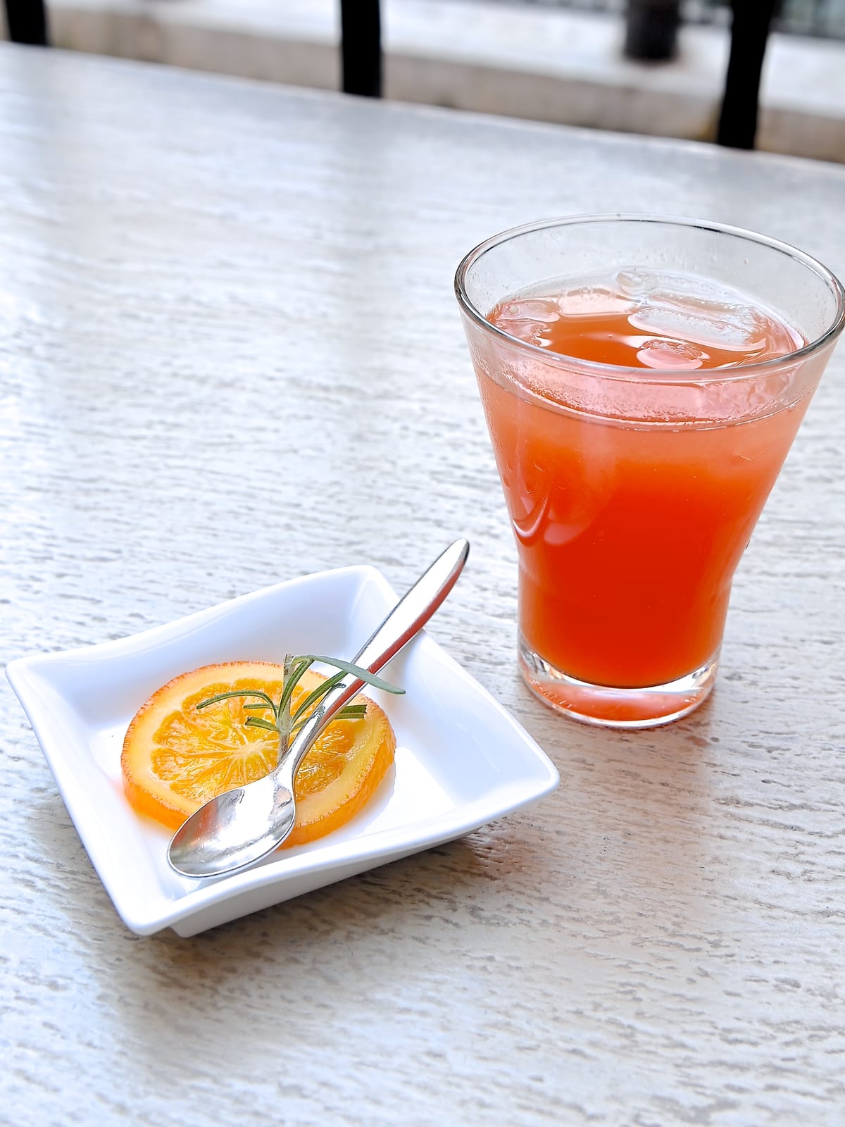 季節のカクテルは、あざやかな色もポイントのブラッドオレンジスパークリングカクテル。